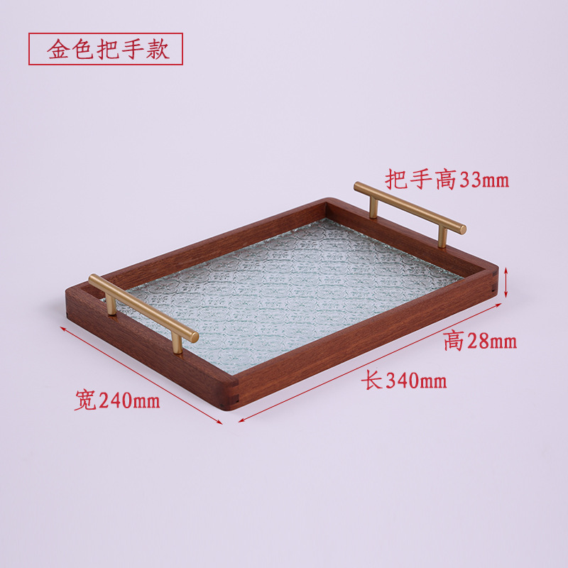 빈티지 베고니아 꽃 유리 트레이 가정용 직사각형 호두 단단한 나무 작은 티 트레이 컵 저장 과일 접시