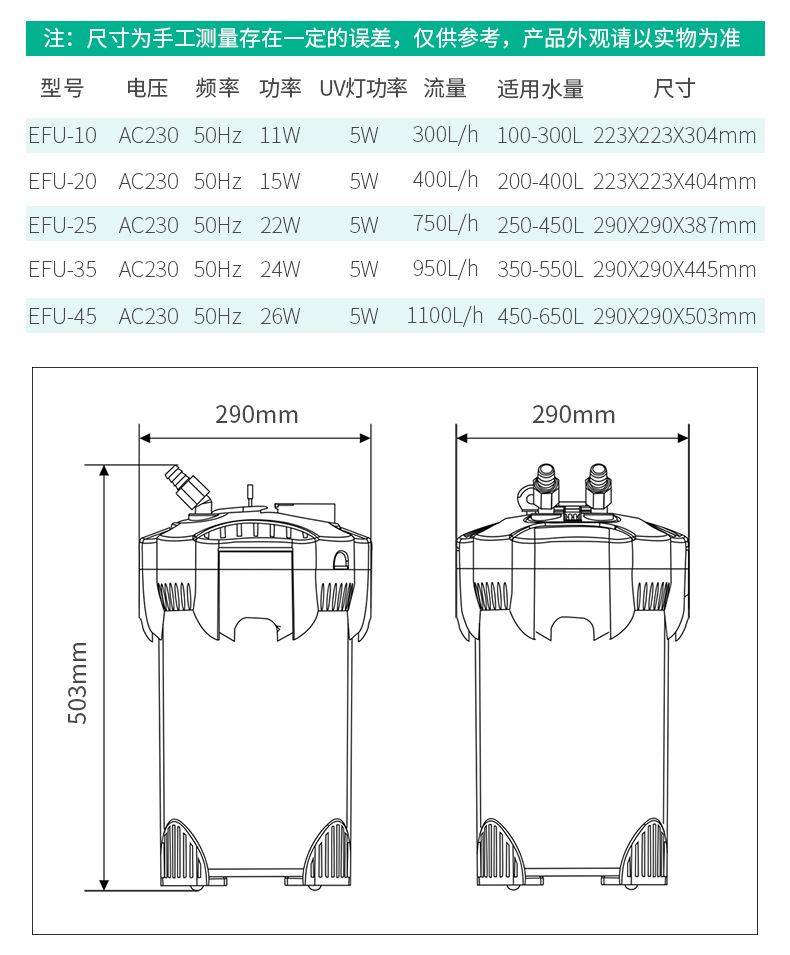 • EFU-35(3 층 여과, 추천 100-150 수족관 사용)