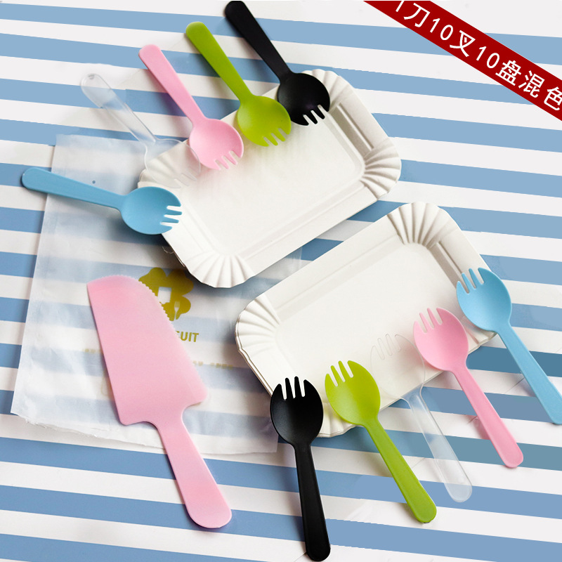 베이킹 케이크 식기 칼과 포크 접시 세트 일회용 생일 케이크 칼과 포크 접시 세트 케이크 접시 포크 조합