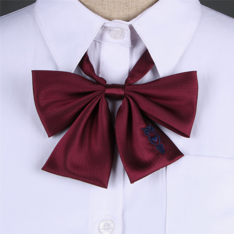• 올빼미 자수 칼라 다크 레드