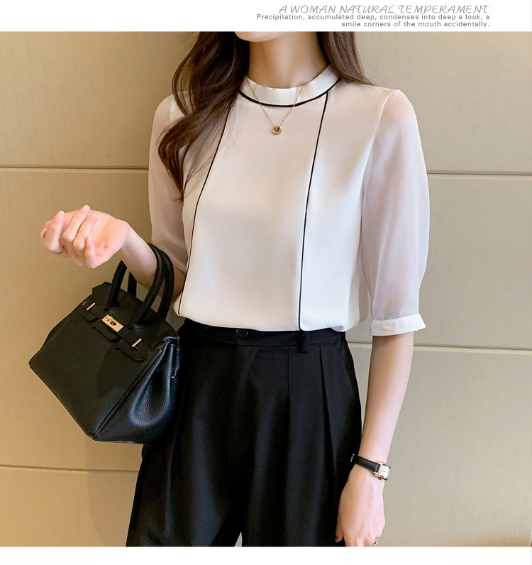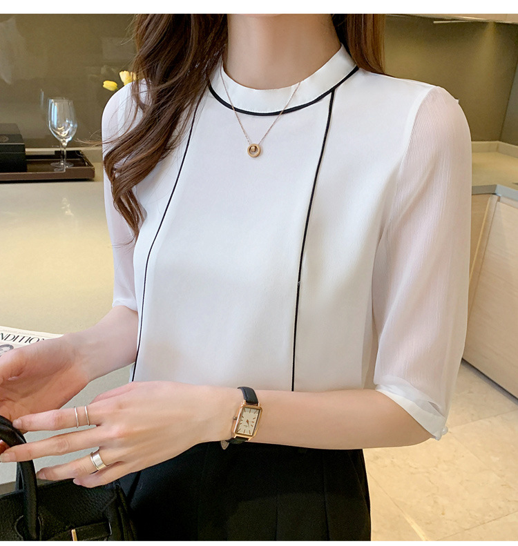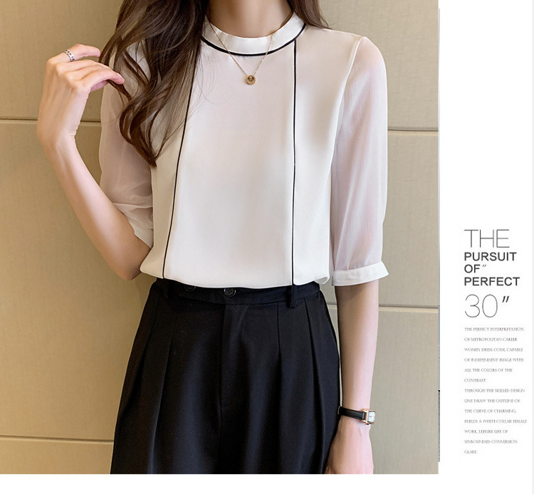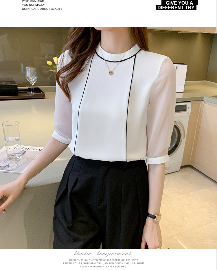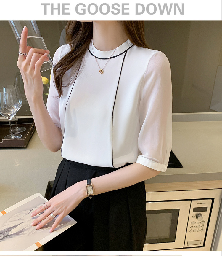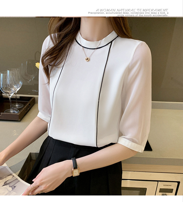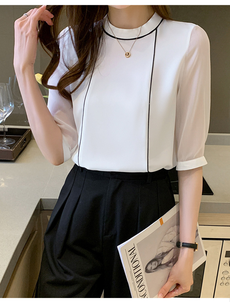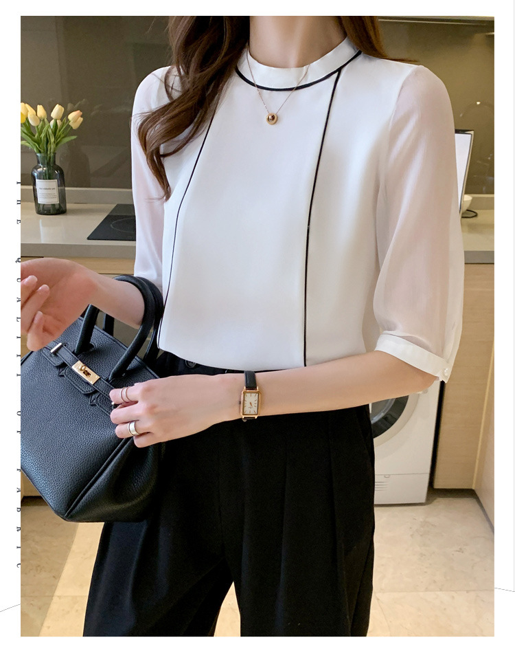 흰색 셔츠 여성 중간 소매 탑 2024 여름 새로운 스타일 간단한 기질 얇은 반팔 셔츠 7부 소매 쉬폰 셔츠스토어 가기