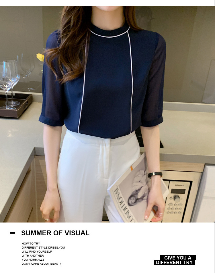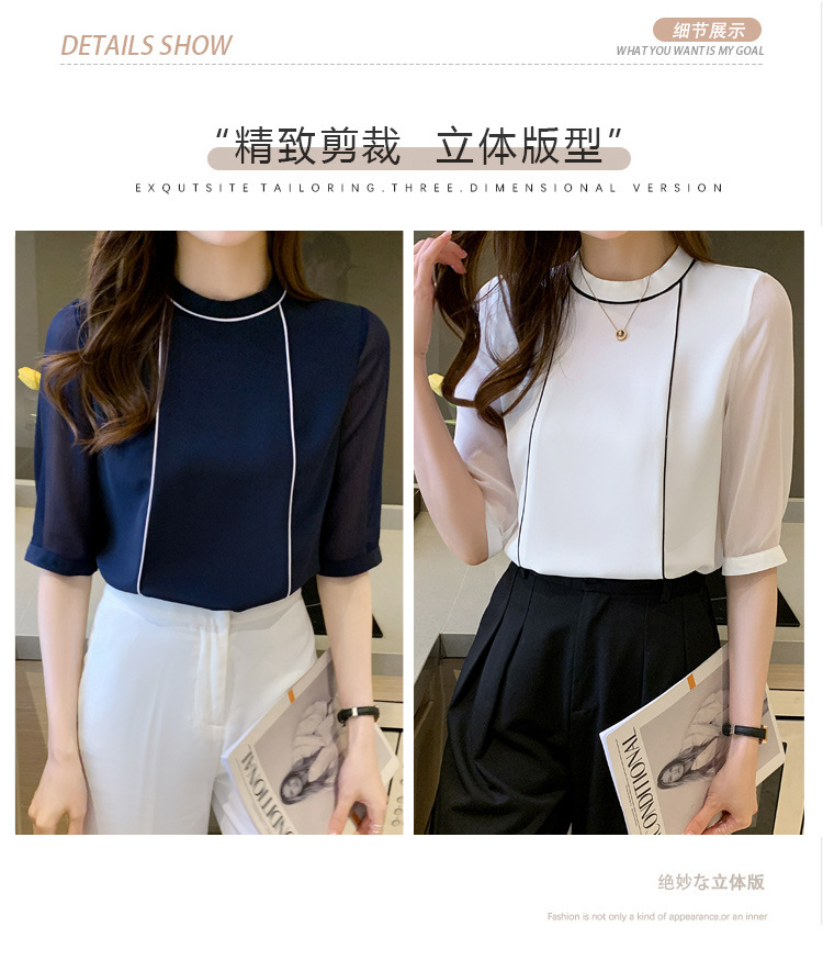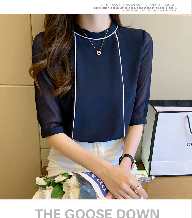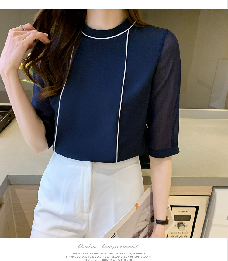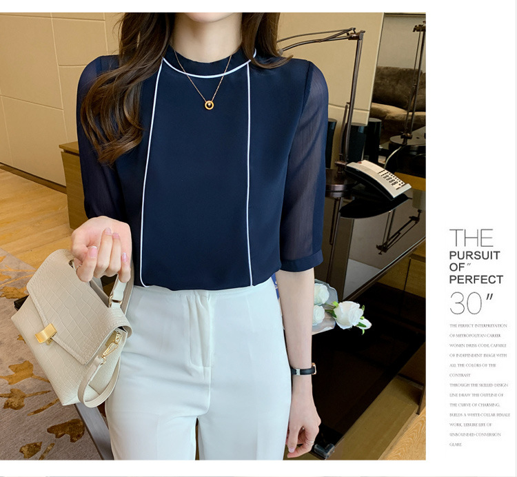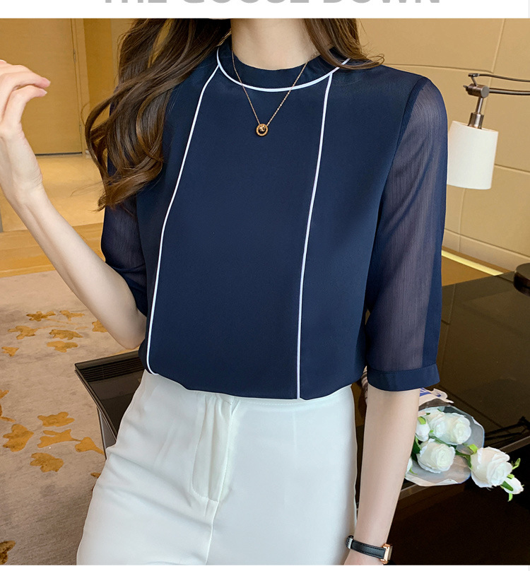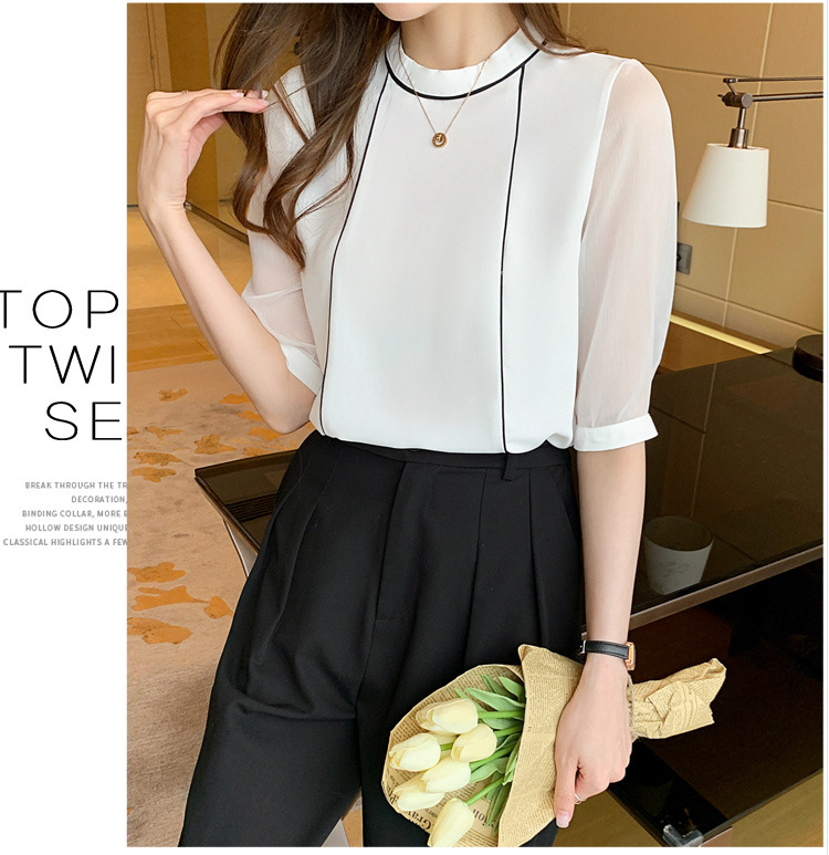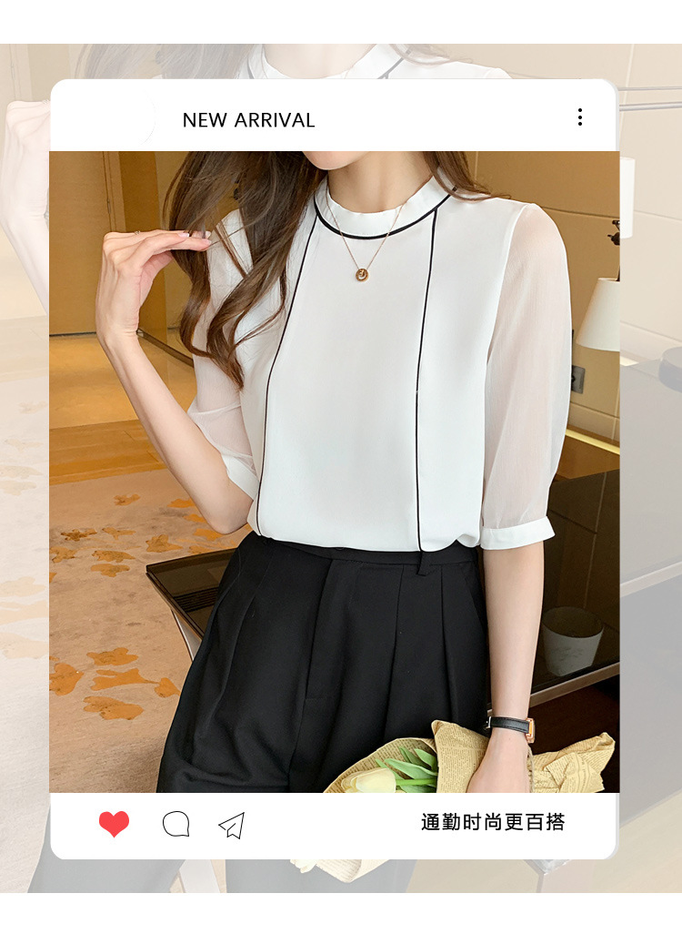 흰색 셔츠 여성 중간 소매 탑 2024 여름 새로운 스타일 간단한 기질 얇은 반팔 셔츠 7부 소매 쉬폰 셔츠스토어 가기