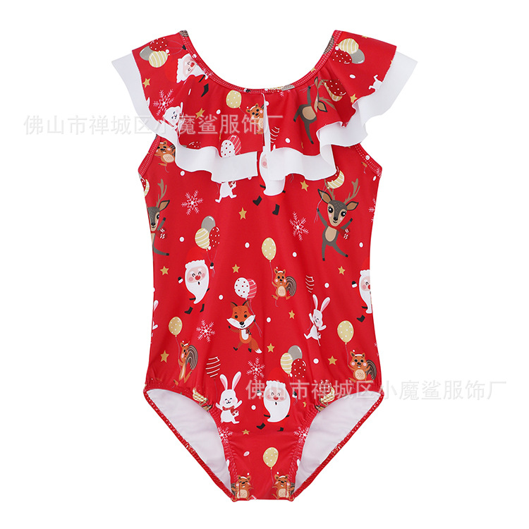 새로운 어린이 수영복, 수출용 여자아이 크리스마스 산타 트리 소녀 레이스 온천복 비치웨어