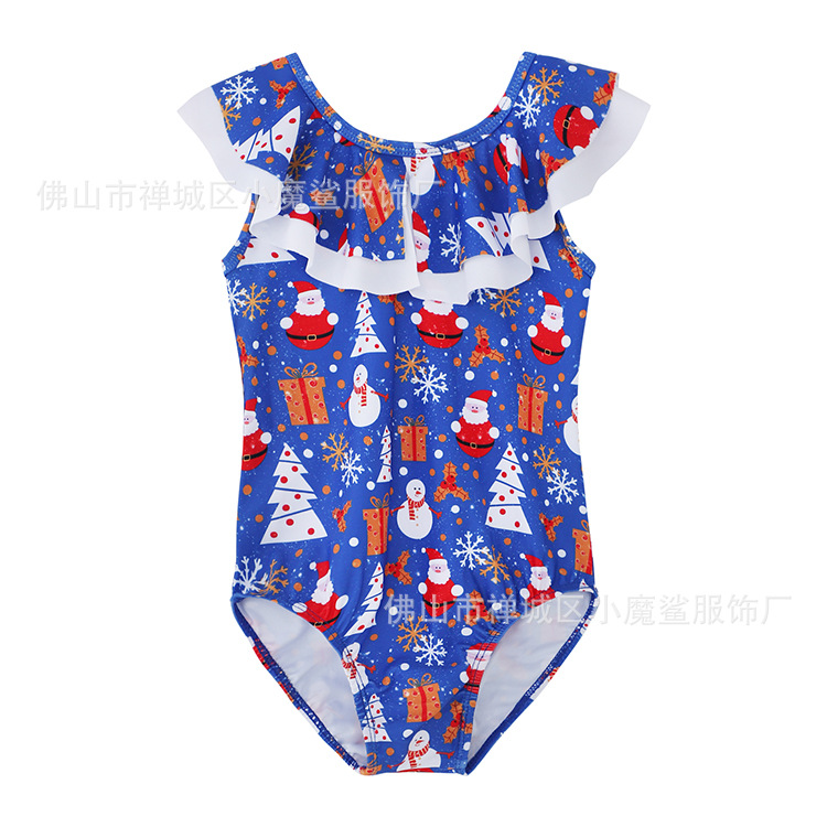 새로운 어린이 수영복, 수출용 여자아이 크리스마스 산타 트리 소녀 레이스 온천복 비치웨어스토어 가기