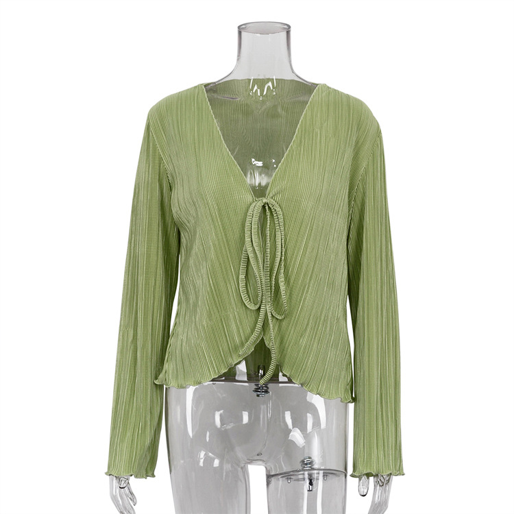유럽풍 2025 신상 여름 섹시 핫걸 탑 슬림핏 플레어 긴팔 플리츠 셔츠 여성 프렌치 스타일스토어 가기