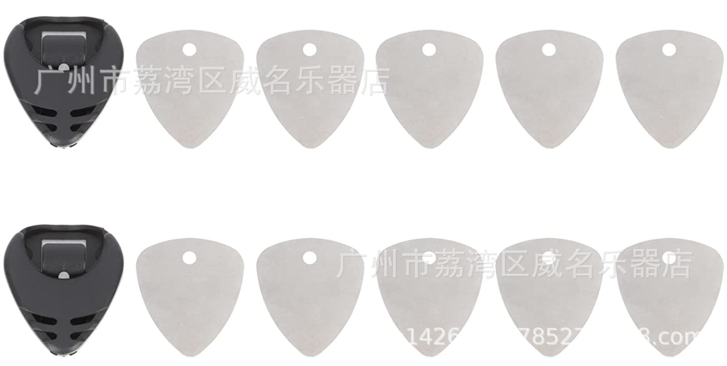 • 구멍이 있는 스테인리스 스틸 픽 10개 + 검정색 픽 박스 2개