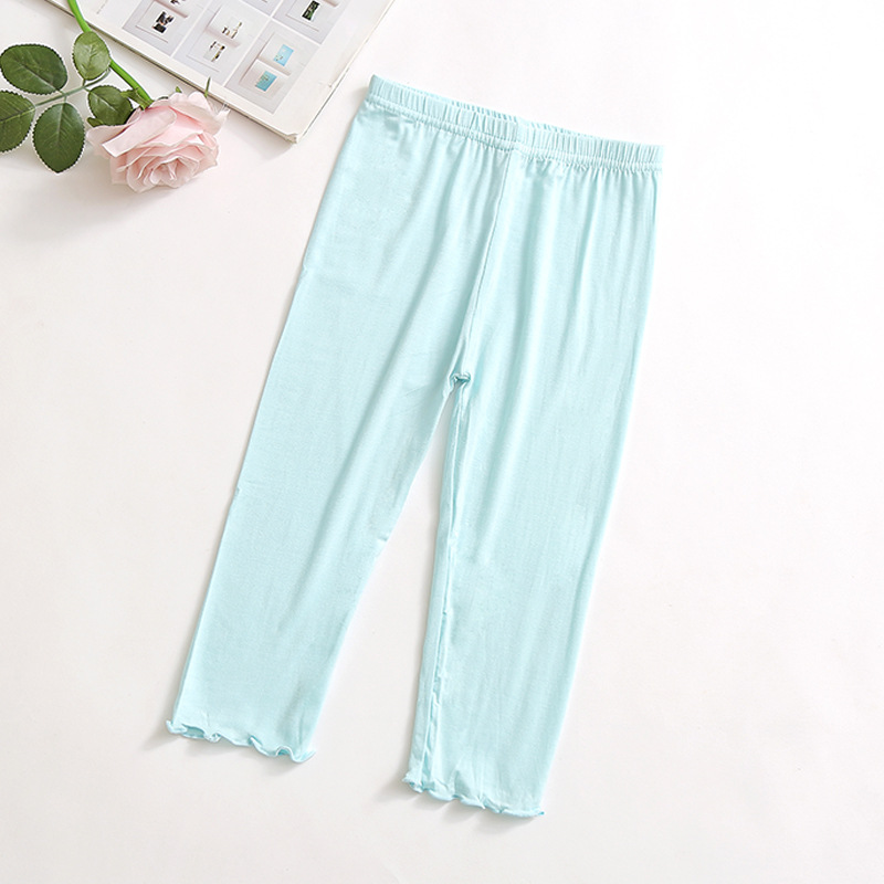 여자 모달 자른 바지 아기 여름 얇은 슬림 핏 단색 어린이 레깅스 겉옷 바지 크로스 미러