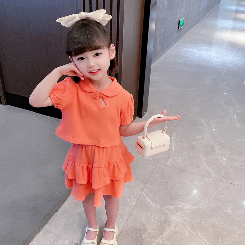 여아 러플 스커트 투피스 세트 2023 여름 새로운 아기 소녀 세련된 패션 세트 아동복