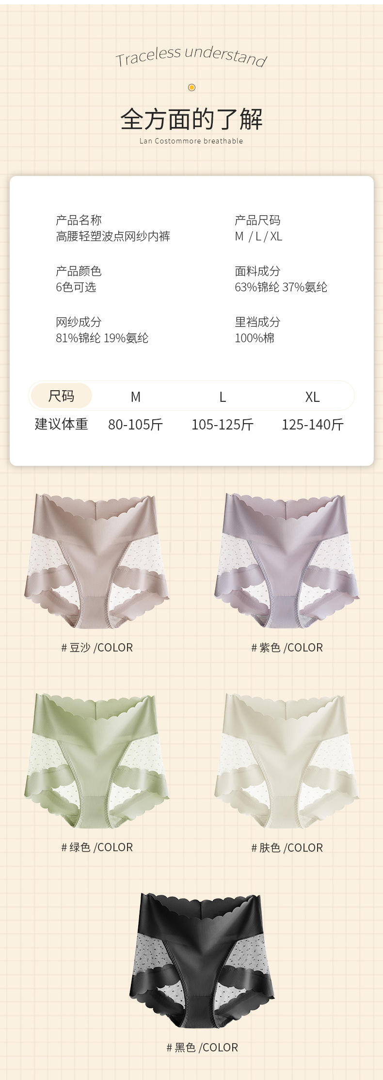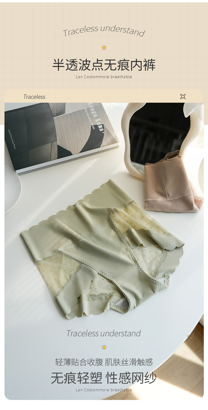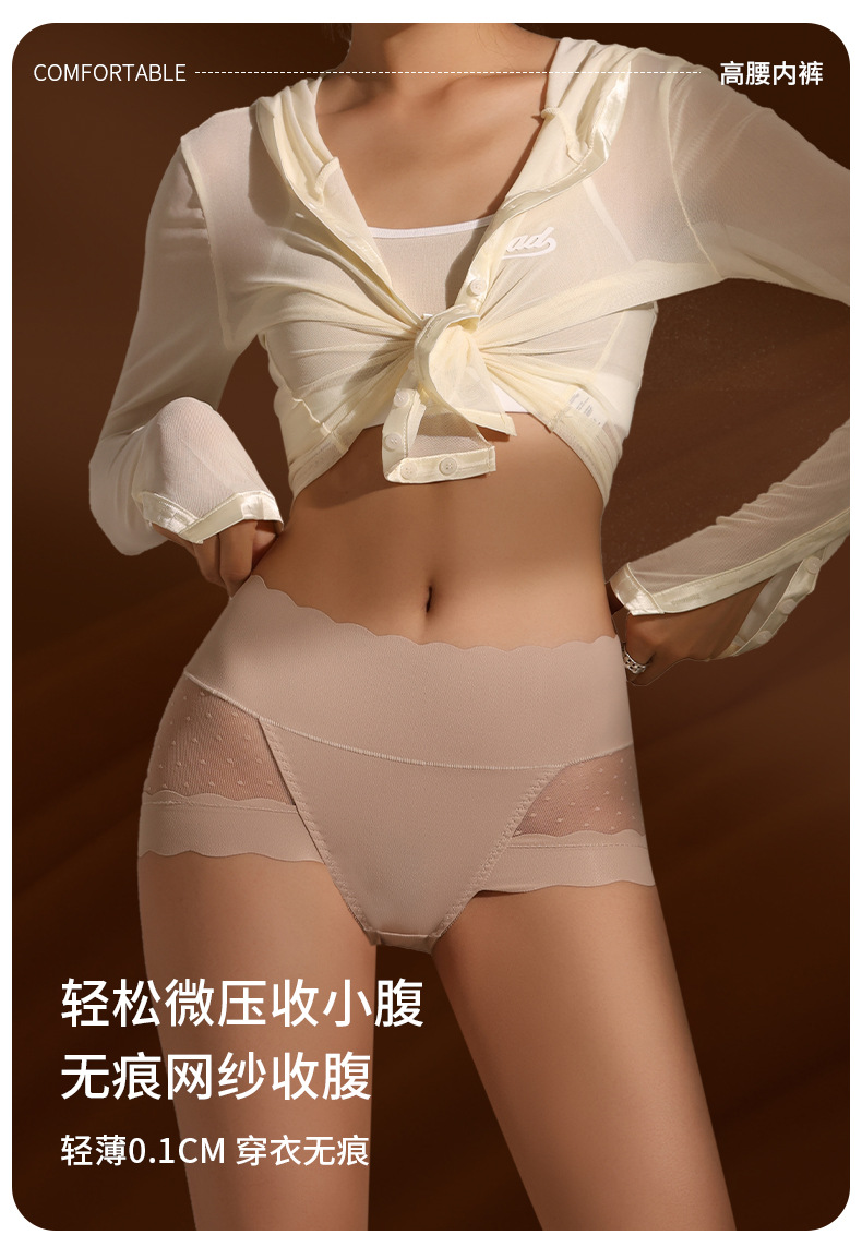 # 4018 # 여성용 무봉제 속옷, 섹시한 메쉬 순면 항균 하이웨이스트 뱃살 조절 팬티, 틱톡 인기 상품