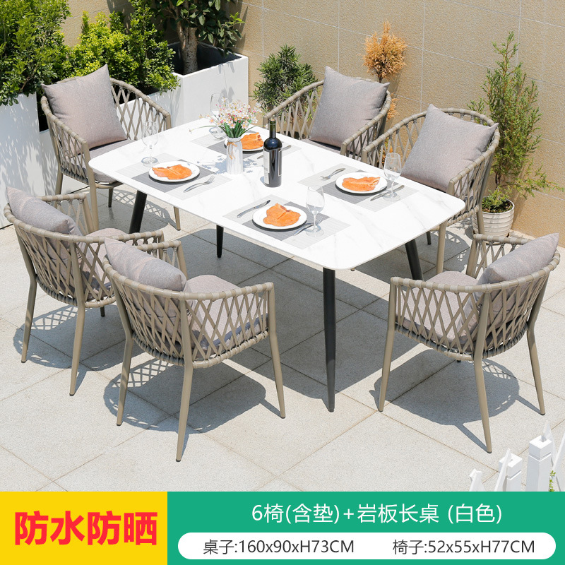 • 6椅(含垫)+岩板长桌 (白色)