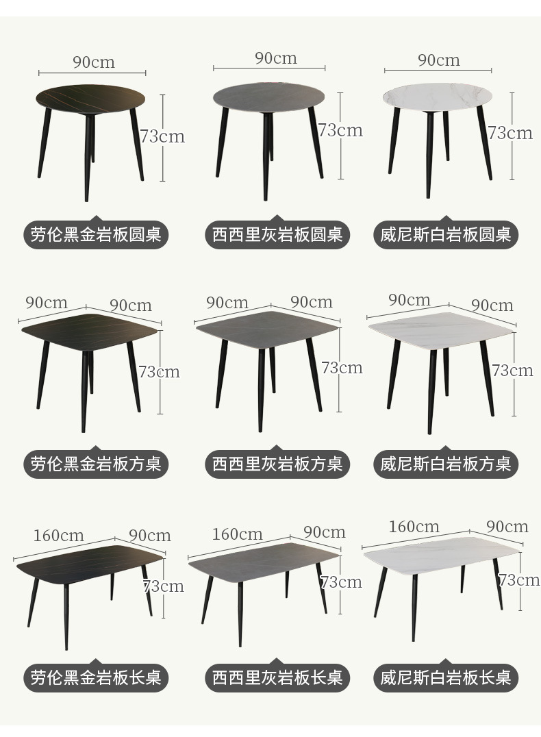 • 4椅(含垫)+岩板圆桌 (黑色)