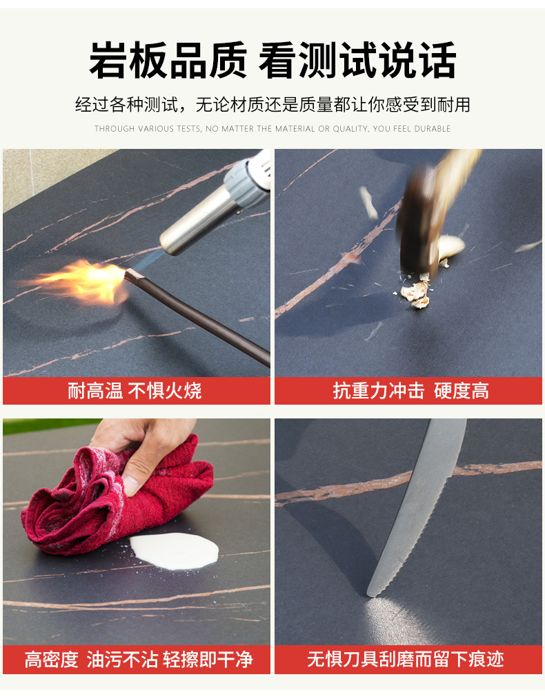 • 4椅(含垫)+岩板长桌 (黑色)
