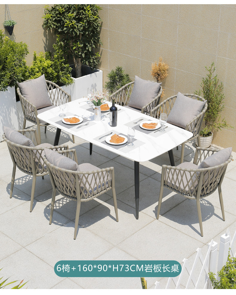• 6椅(含垫)+岩板长桌 (灰色)