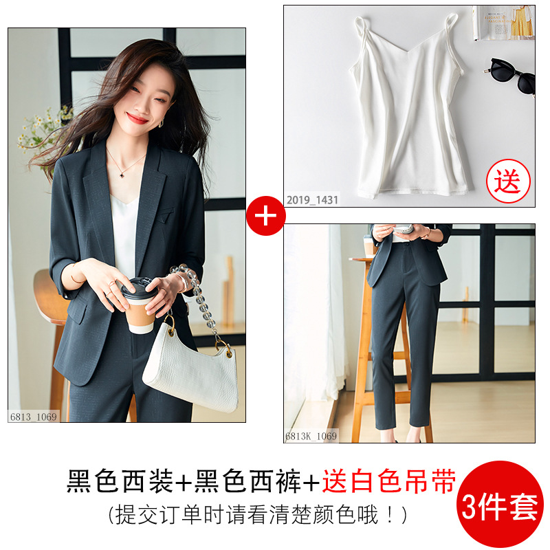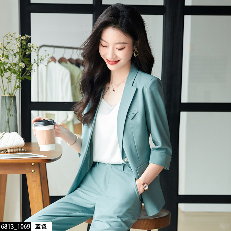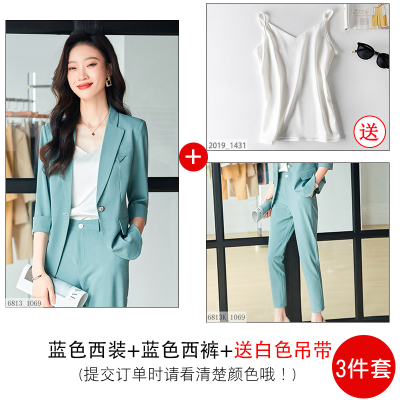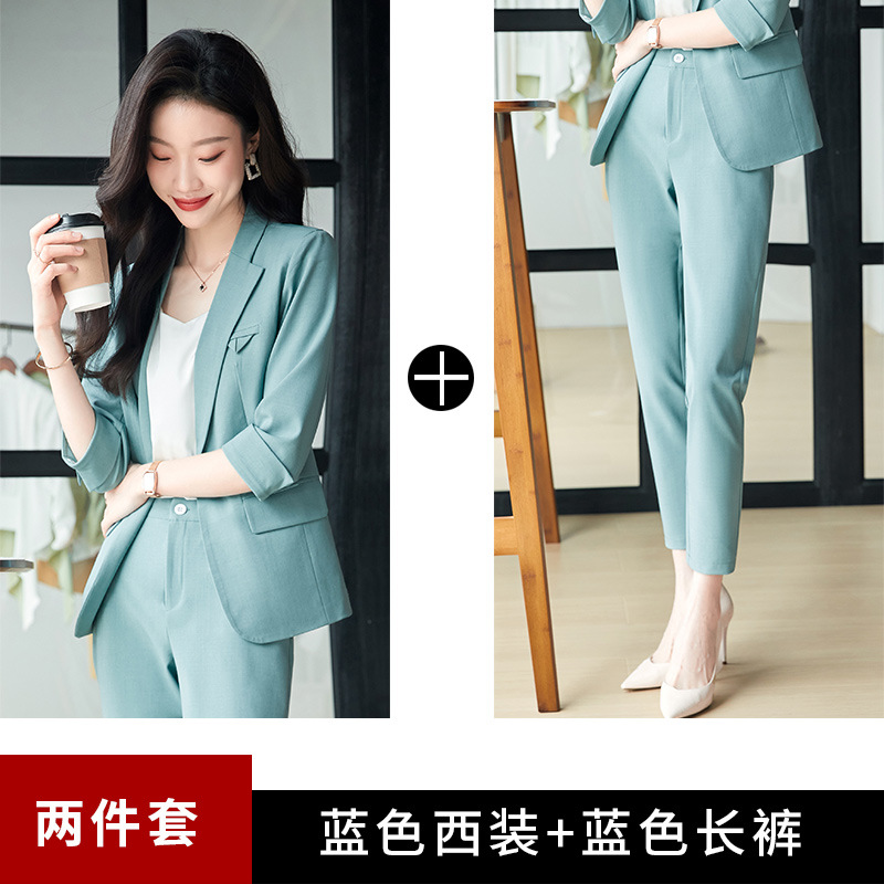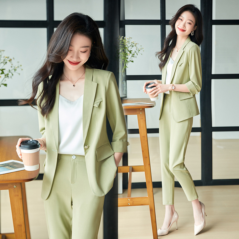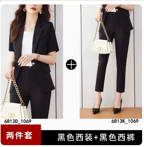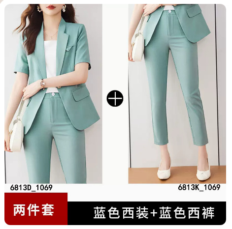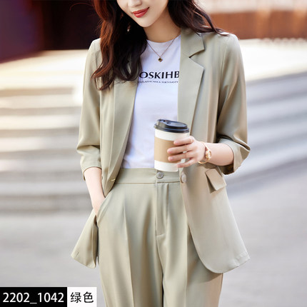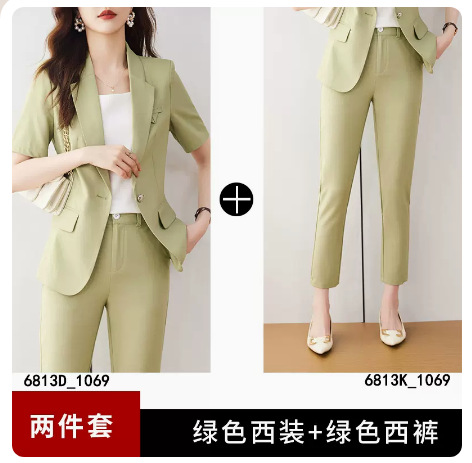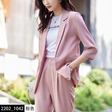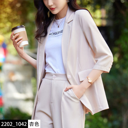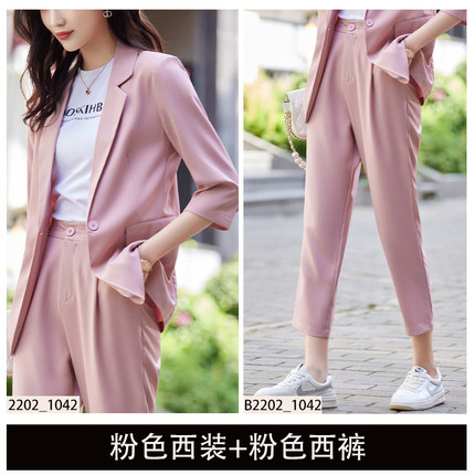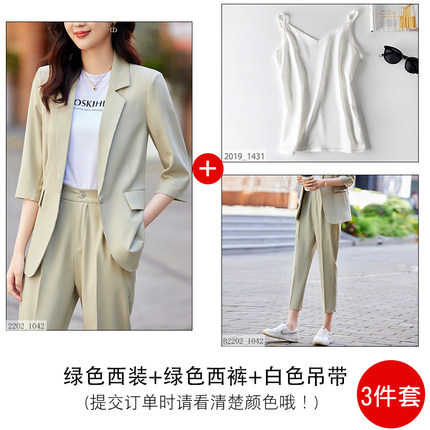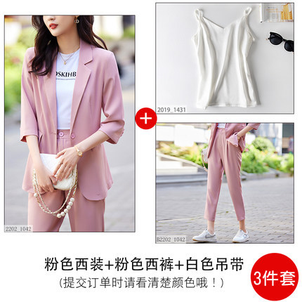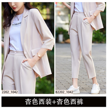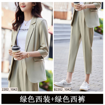세트 재킷 여자의 여름 얇은 자른 작은 캐주얼 패션 우아한 작업복 전문 세트 세트 여름스토어 가기