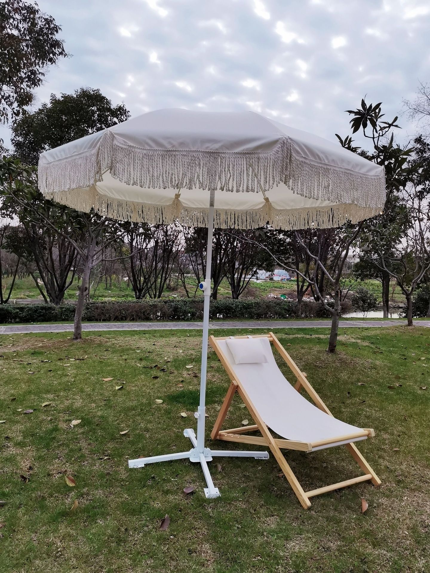• 화이트 스틸 파이프 술 우산 + 받침대 + 체중 증가 워터 백