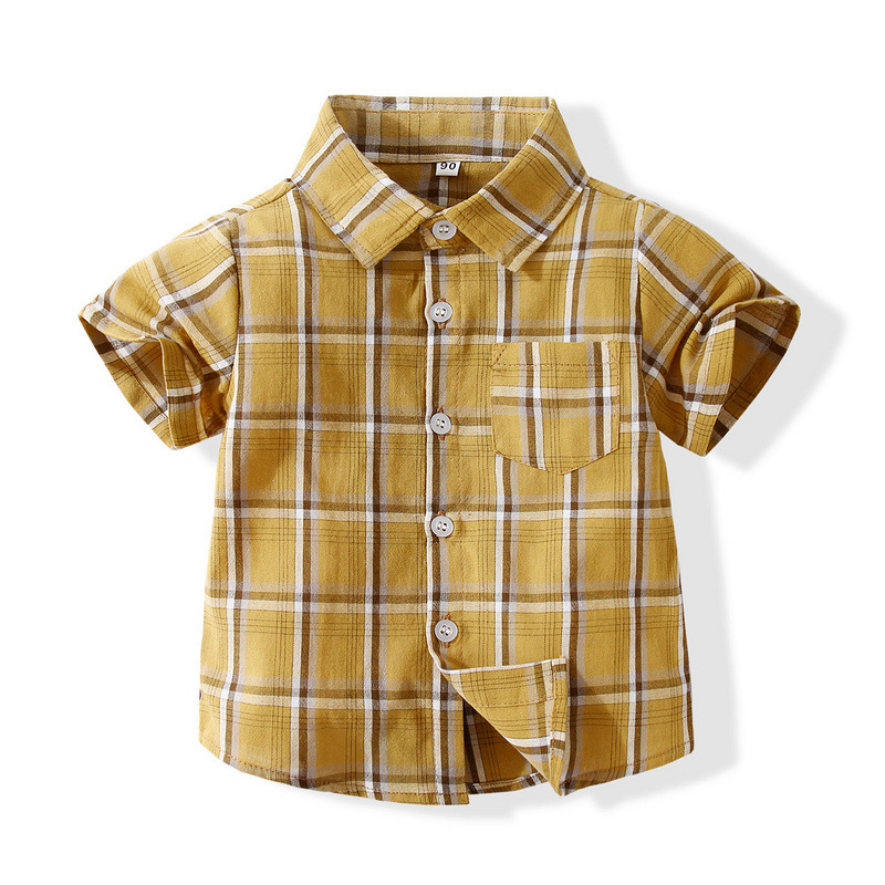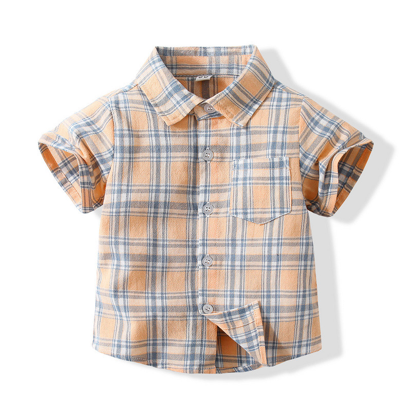 소년 셔츠 반팔 면 격자 무늬 통기성 작은 셔츠 여름 새로운 어린이 옷깃 신사 캐주얼 셔츠스토어 가기