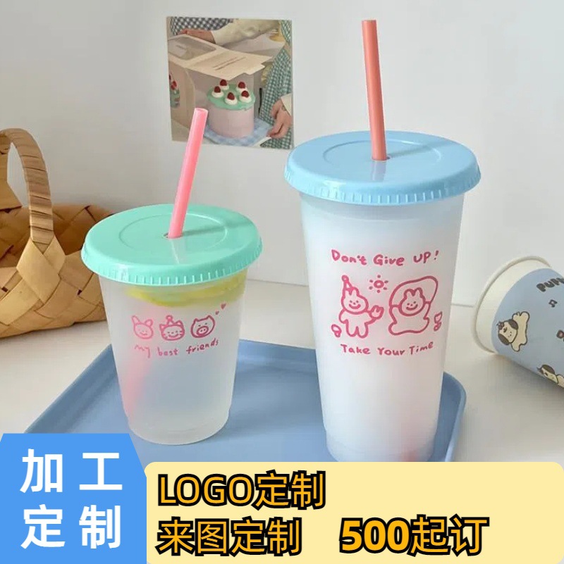 수제 스타일 캔디 컬러 여름 커피 컵 플라스틱 흡입 컵 대용량 캐주얼 컵 여아 하트 워터 컵