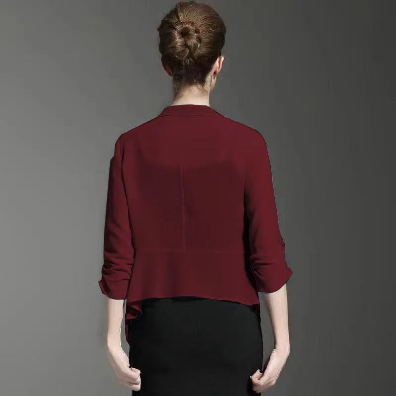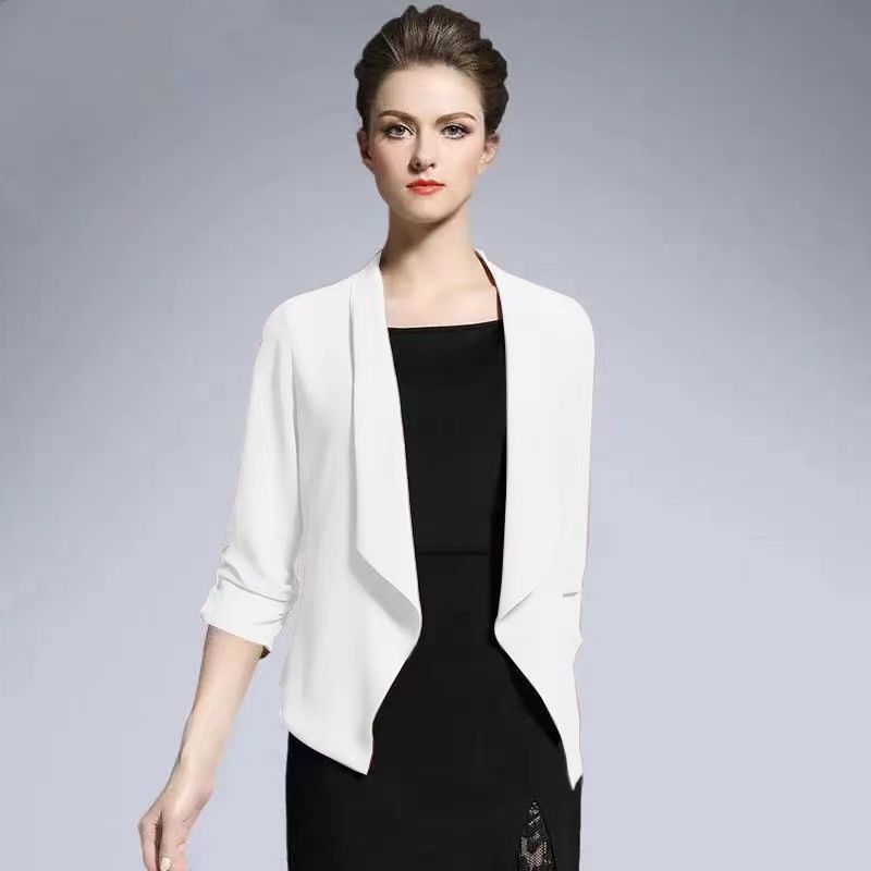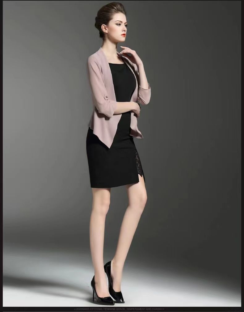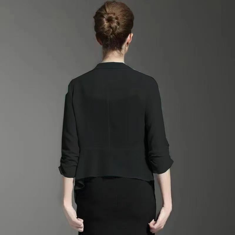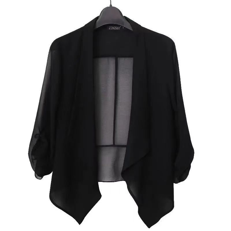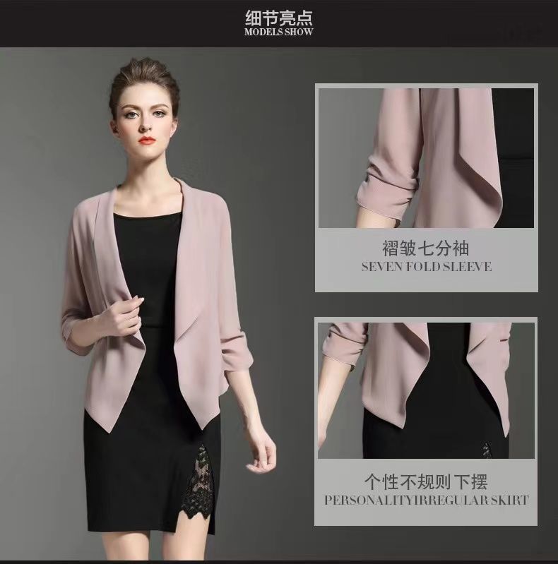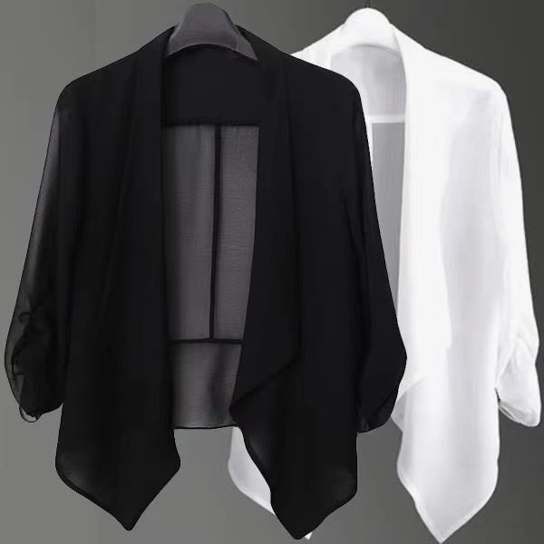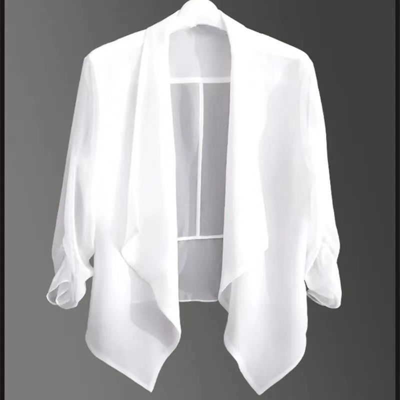 짧은 코트 여자의 봄과 여름 2023 신상품 플러스 사이즈 쉬폰 카디건 얇은 매칭 스커트 여성용 작은 숄 자외선 차단제 의류스토어 가기