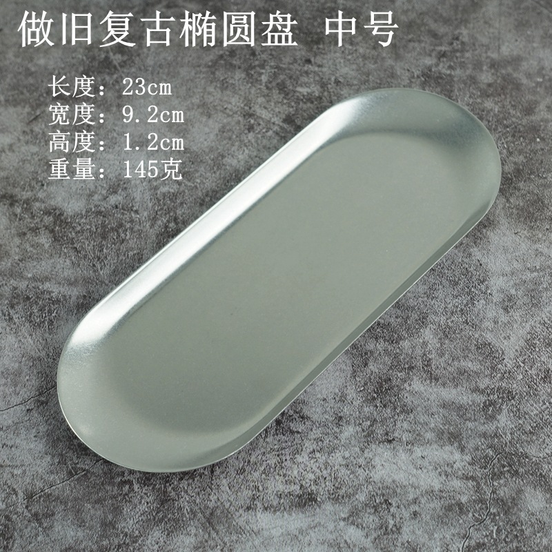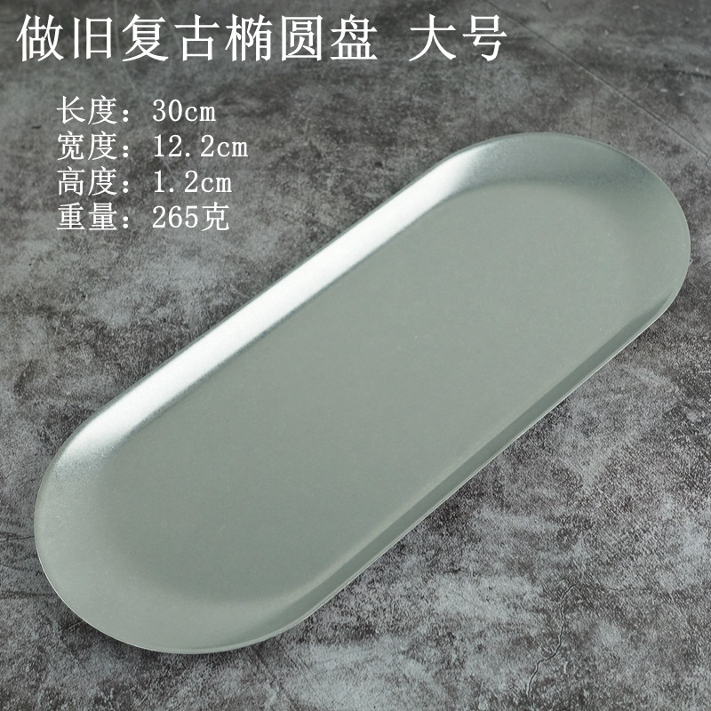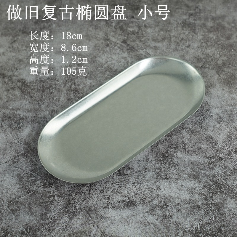 오래된 눈송이 실버 만든 빈티지 한국식 식기 스테인레스 스틸 타원형 접시 투명 송곳니 플레이트 산업 스타일 in 촬영 플레이트스토어 가기