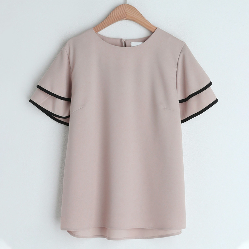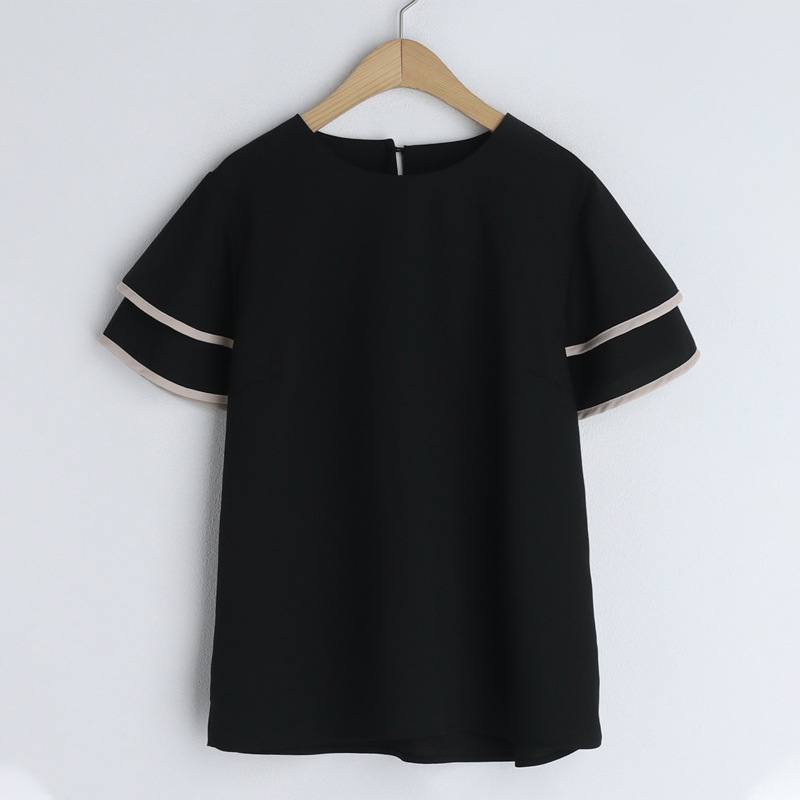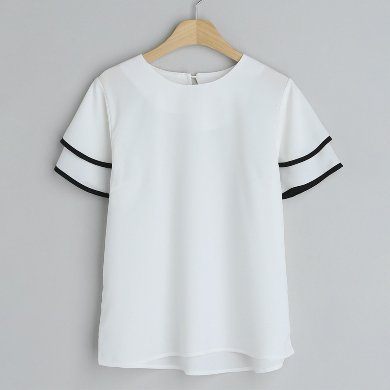 한국 스타일 새로운 3 색 여름 더블 레이어 연꽃 잎 소매 라운드 넥 쉬폰 셔츠 여성의 우아한 느슨한 최고 대외 무역 품질스토어 가기