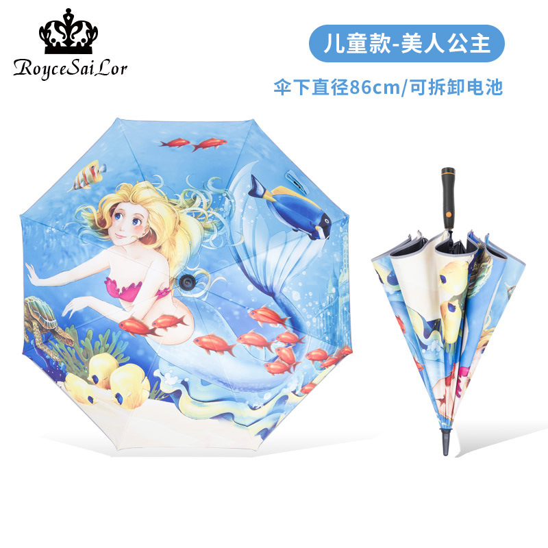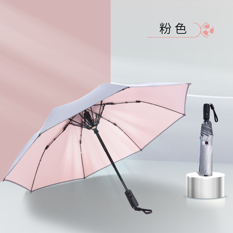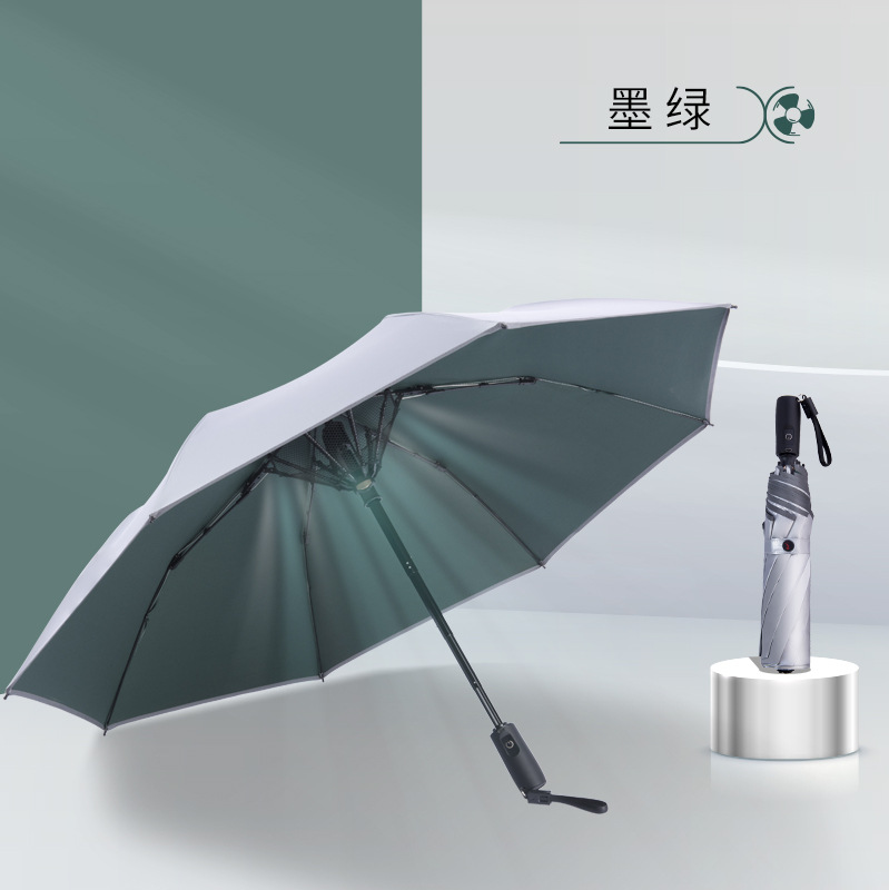 팬 우산 맞춤형 냉각 유물 선 스크린 양산 긴 손잡이 햇빛 우산 광고 인쇄 패턴 로고 선물 우산