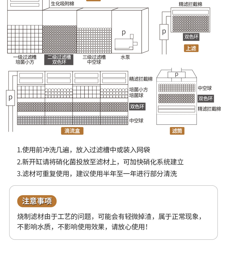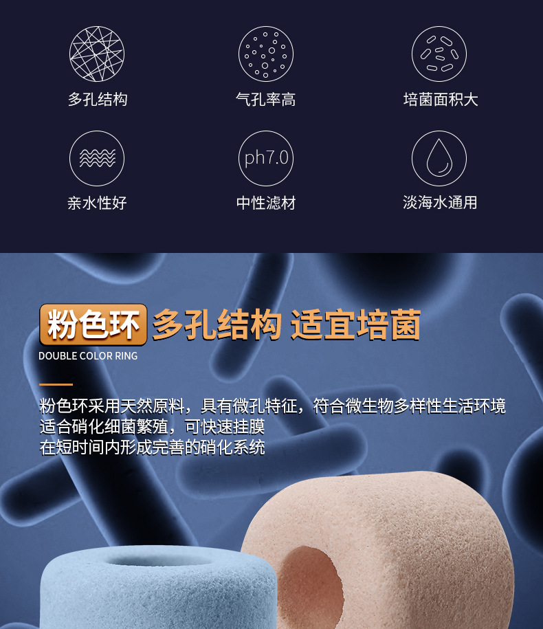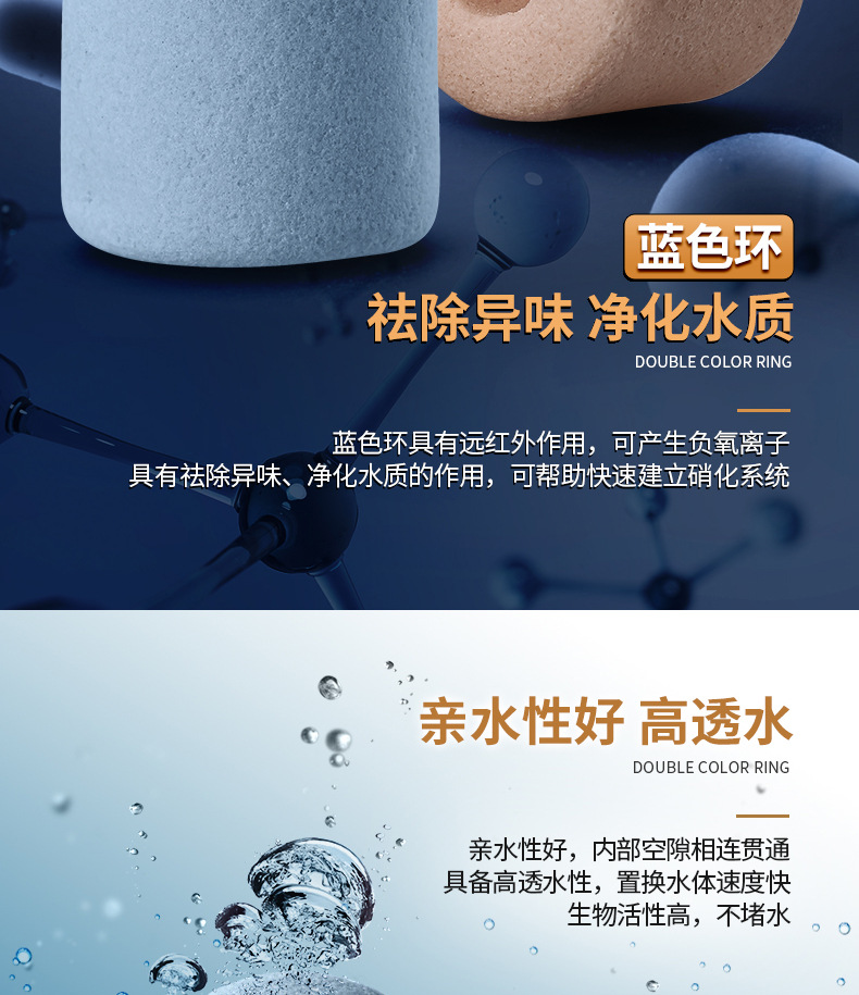 Xizun 더블 컬러 링 어항 필터 재료 세균 재배 물 정화 질화 세균 하우스 세라믹 링 어항 필터 재료스토어 가기