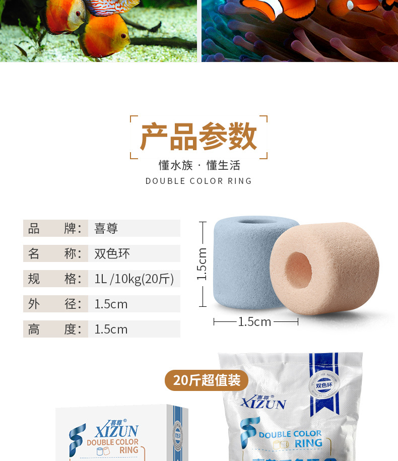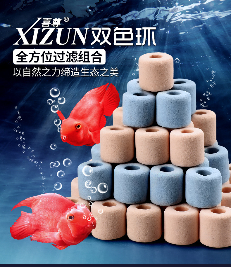 Xizun 더블 컬러 링 어항 필터 재료 세균 재배 물 정화 질화 세균 하우스 세라믹 링 어항 필터 재료