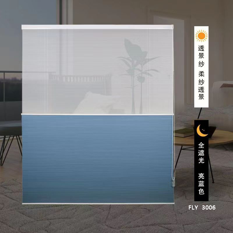 • 주야간 커튼 흰색 거즈 + 완전 암막 밝은 파란색