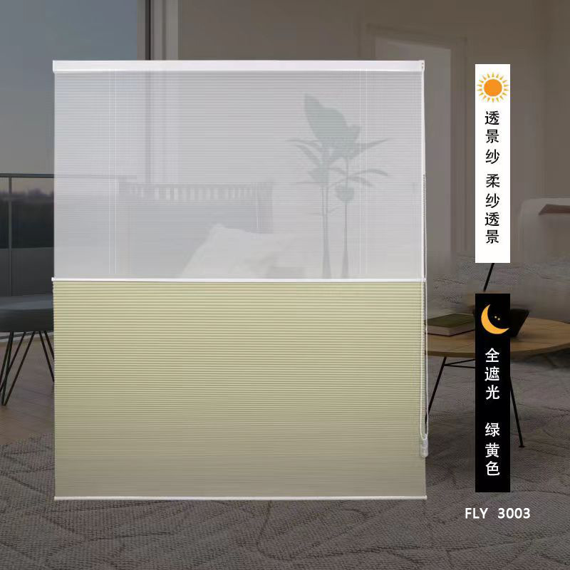 • 주야간 커튼 흰색 거즈 + 완전 암막 녹색 및 노란색