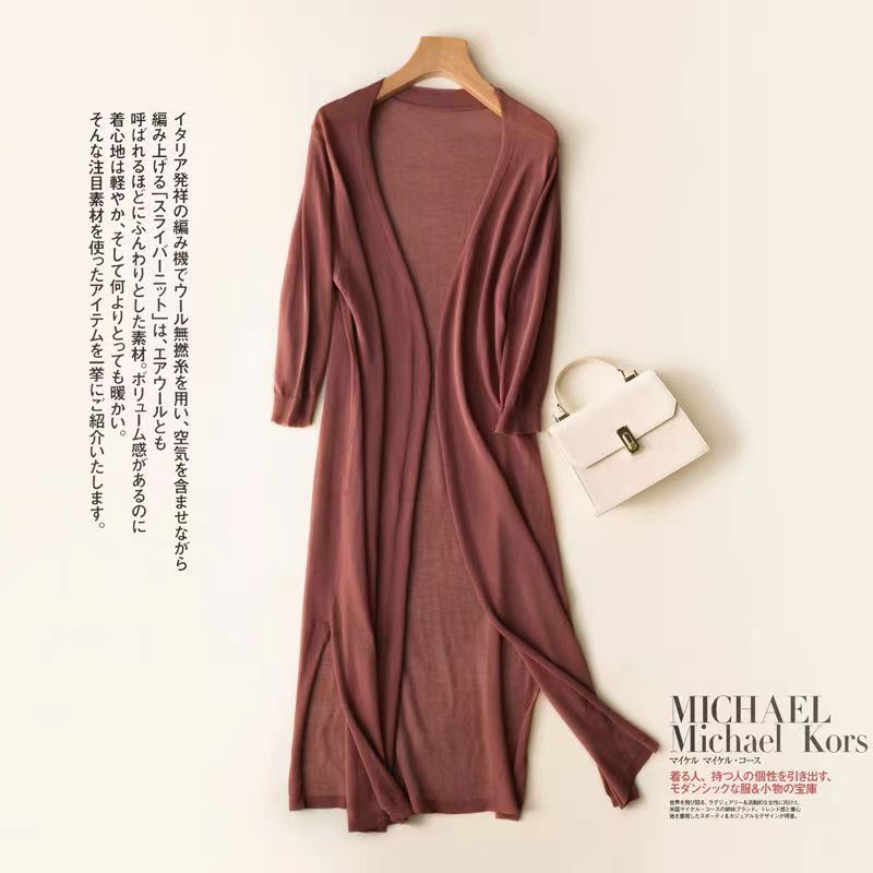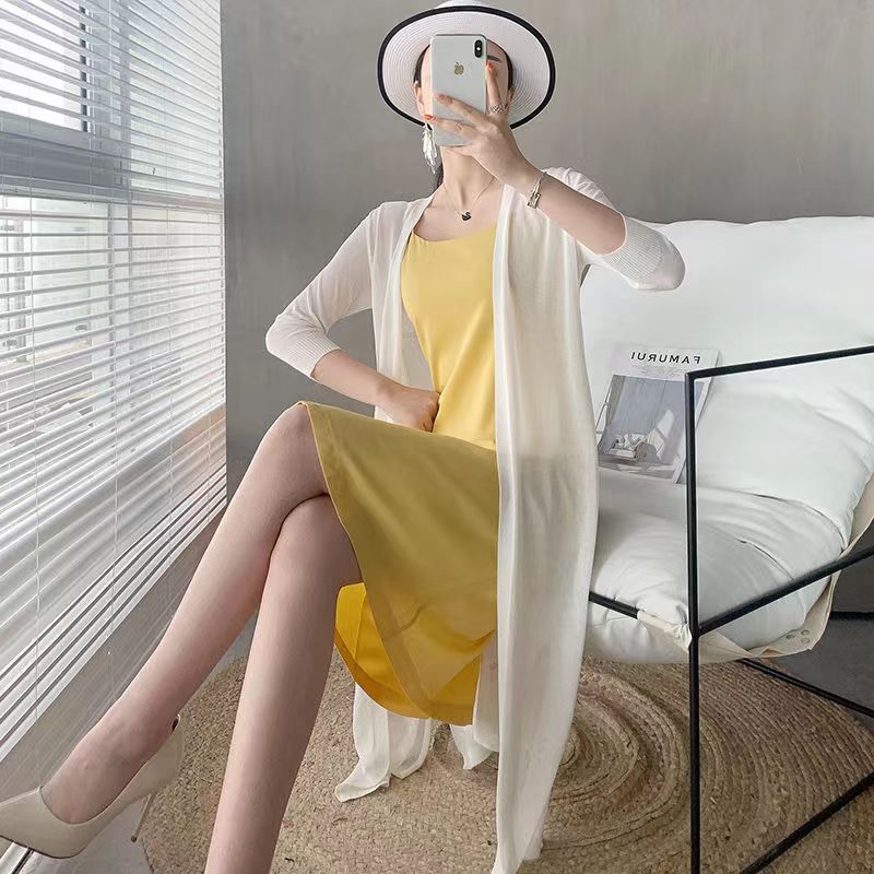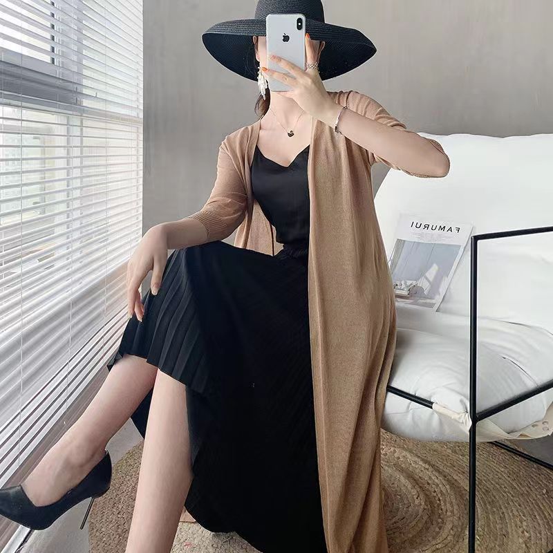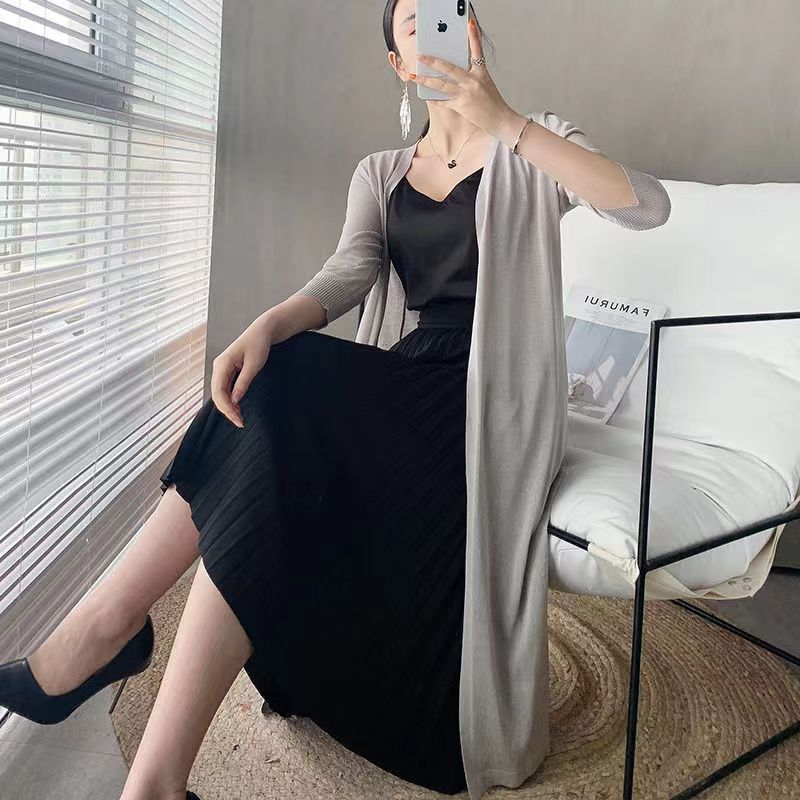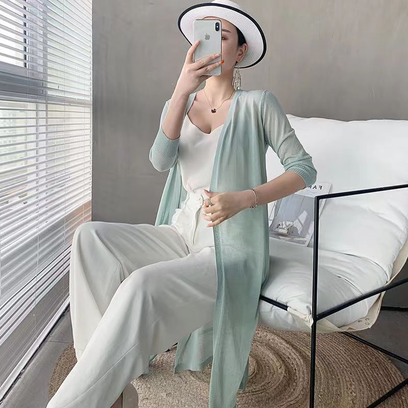 아이스 실크 니트 가디건 여성용 자외선 차단제 의류 중간 길이 소매 여름 얇은 숄 겉옷 느슨한 에어컨 셔츠 재킷