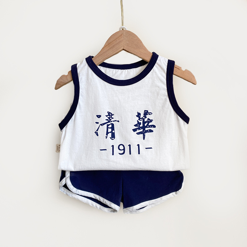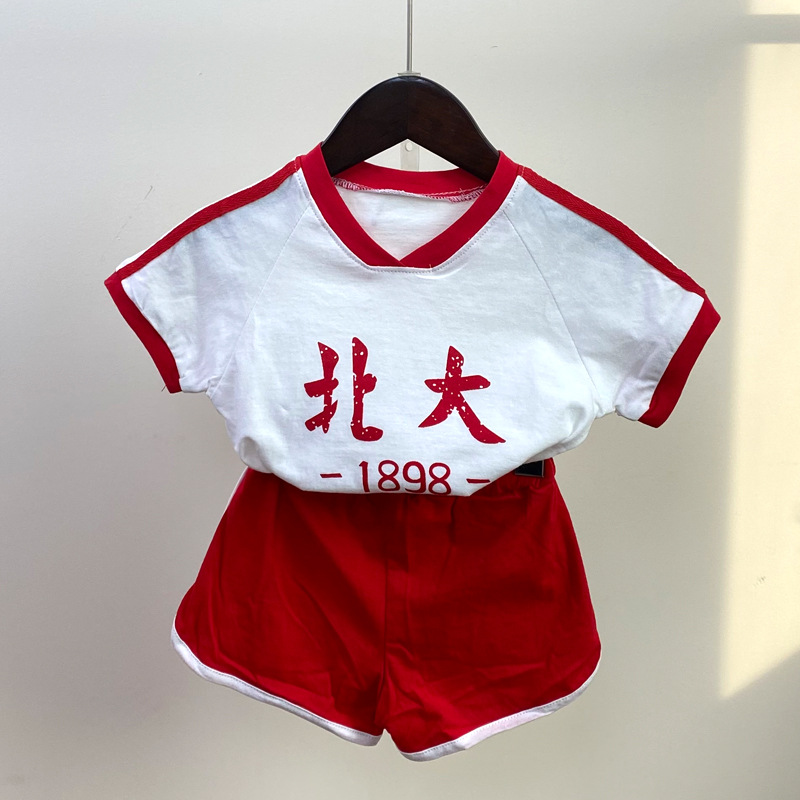 2022 어린이 반팔 세트 면 여름 대학 스타일 북경 대학 청화 아동복 여아 세트 여름 스타일 남아 여름 착용