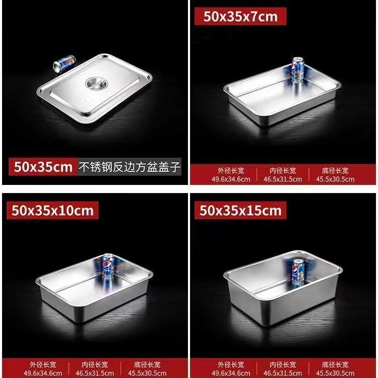 【产品名称】:特厚加深不锈钢方盆 大容量快餐盆 长方形平底方盘