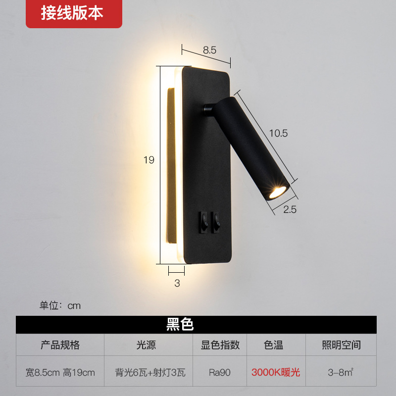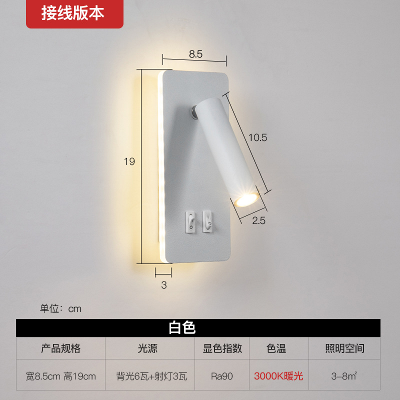 북유럽 벽등 호텔 서재 침실 벽등 현대적이고 창의적인 스위치가 있는 조명 회전 가능한 침대 옆 독서등
