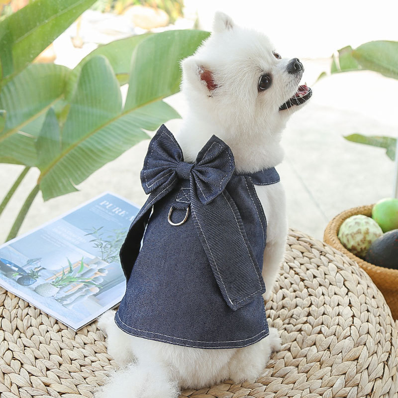 애완 동물 데님 옷 큰 개 애완 동물 고양이 데님 치마 용품 데님 가슴 스트랩 개 견인 벨트 옷스토어 가기