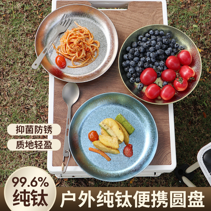 도매 야외 순수 티타늄 디너 플레이트 요리 빛 럭셔리 스타일 과일 라운드 트레이 가정용 높은 색상 가치 일본식 순수 티타늄 플레이트스토어 가기