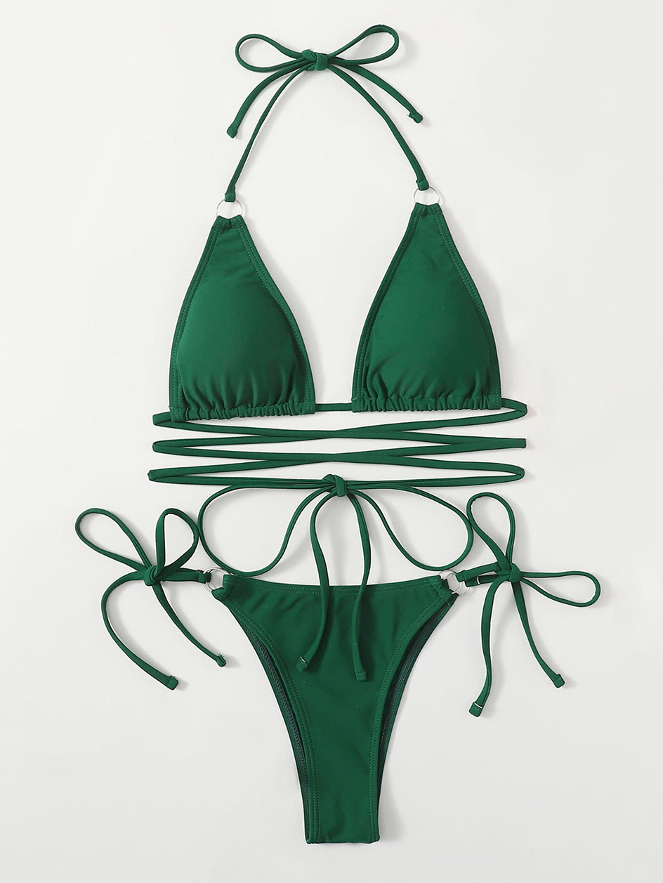 2022년 신상 분리형 비키니 단색 끈 비키니 여성 스포츠 수영복 아마존