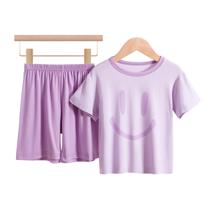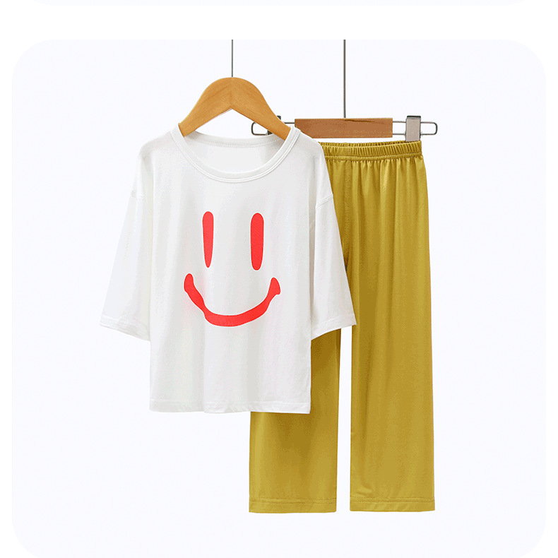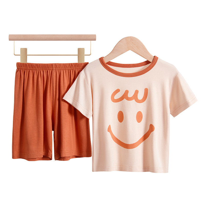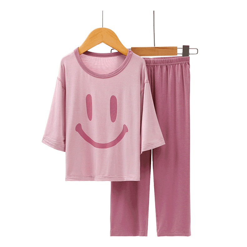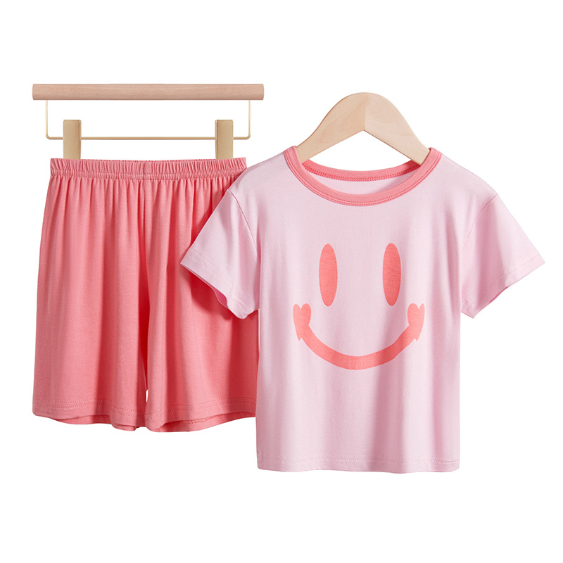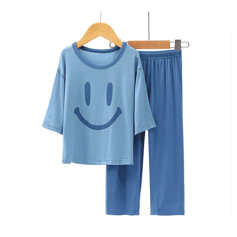 모달 어린이 잠옷 여름 얇은 아기 에어컨 의류 소년 가정 옷 여름 세트 소녀 스마일스토어 가기