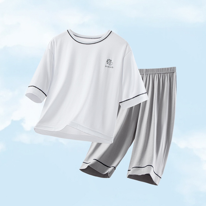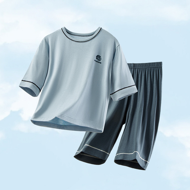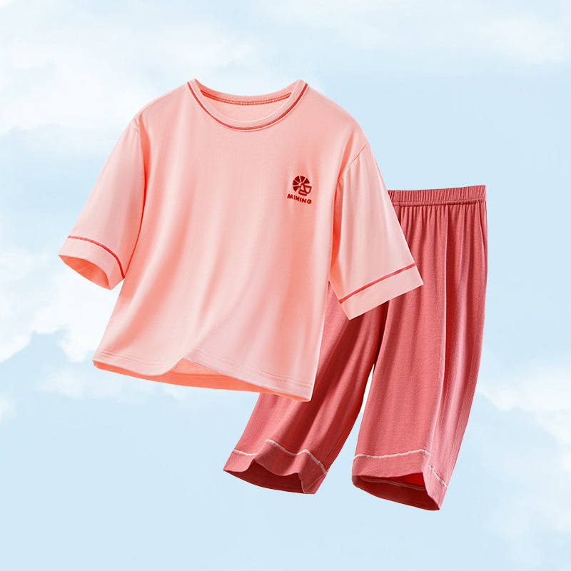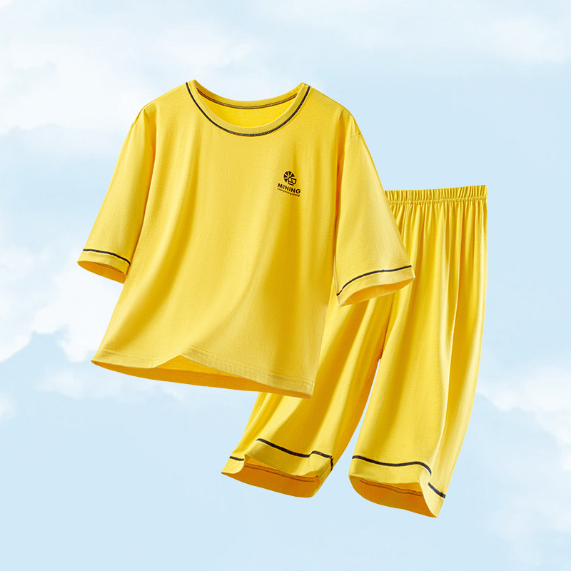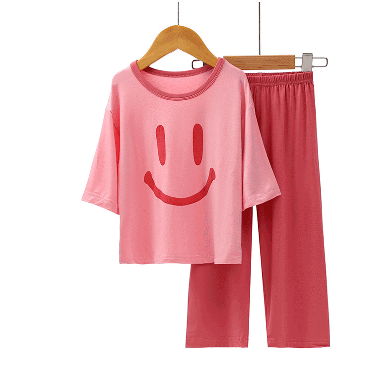 모달 어린이 잠옷 여름 얇은 아기 에어컨 의류 소년 가정 옷 여름 세트 소녀 스마일