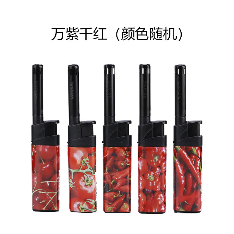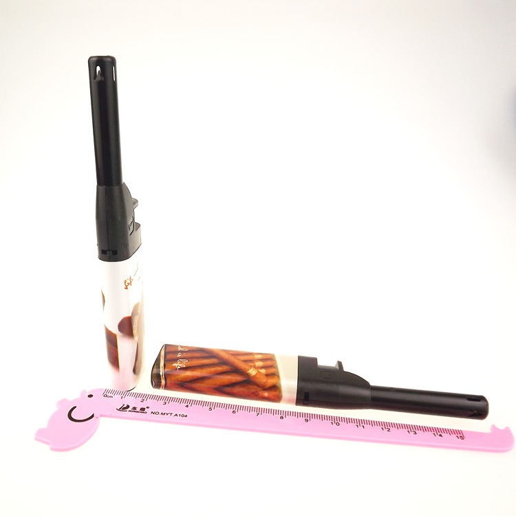 길어진 부엌 라이터 긴 입 오픈 불꽃 블랙 튜브 L 형 가정용 방풍 라이터 재고 제조 업체 도매