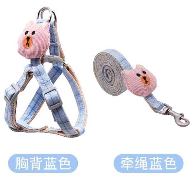 애완 동물 개 밧줄 조정 가능한 어깨 끈 개 가슴 끈 중소 개 만화 안티 브레이크 조끼 가죽 끈스토어 가기
