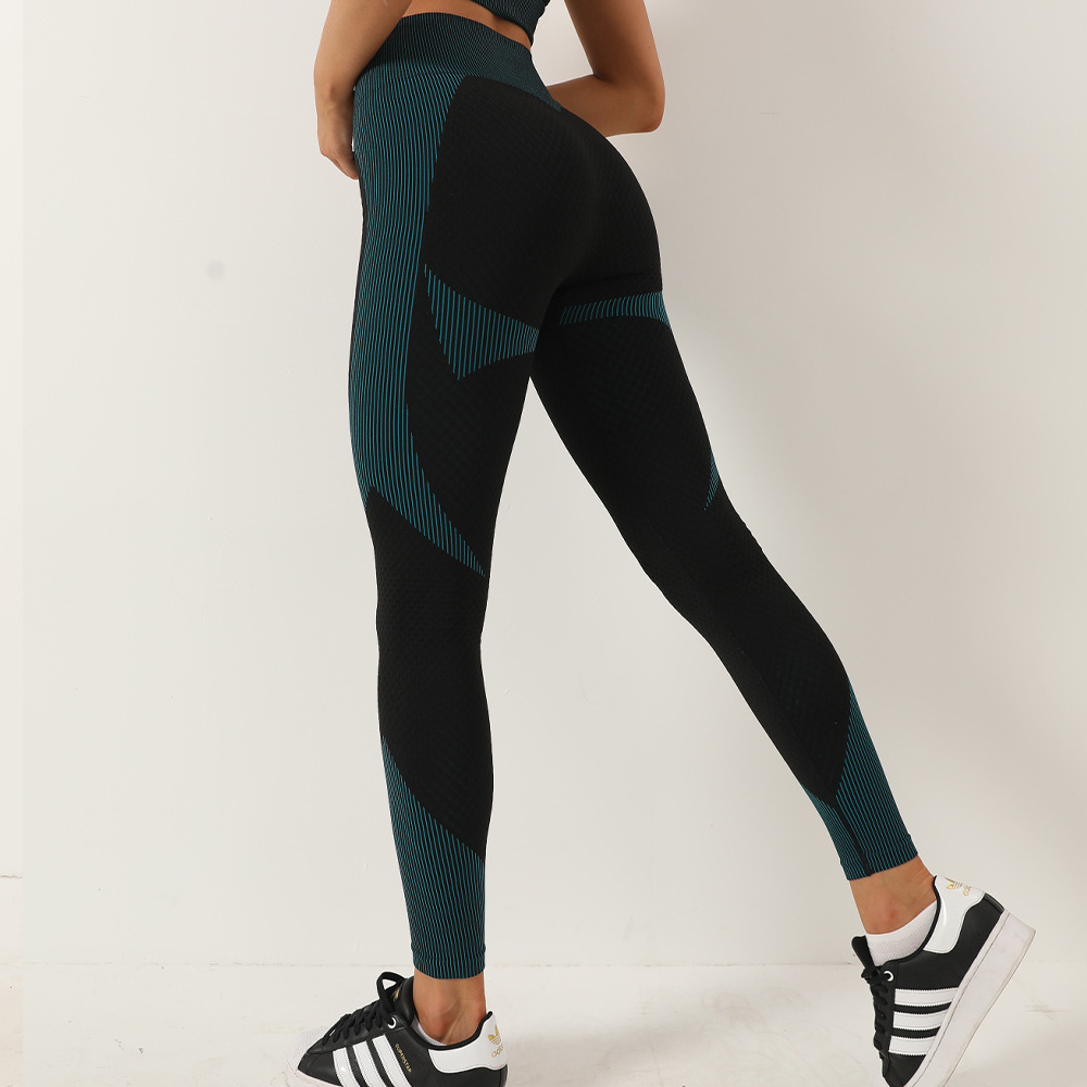 대비 색상 스트라이프 복숭아 힙 피트니스 바지 여성용 하이 웨이스트 타이트 스트레치 요가 바지 속건 스포츠 바지스토어 가기