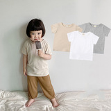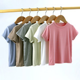 【款式】韩版童装短袖T恤夏季儿童纯色蝙蝠袖T恤衫男女童圆领打底宽松