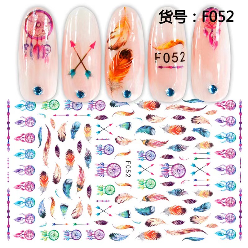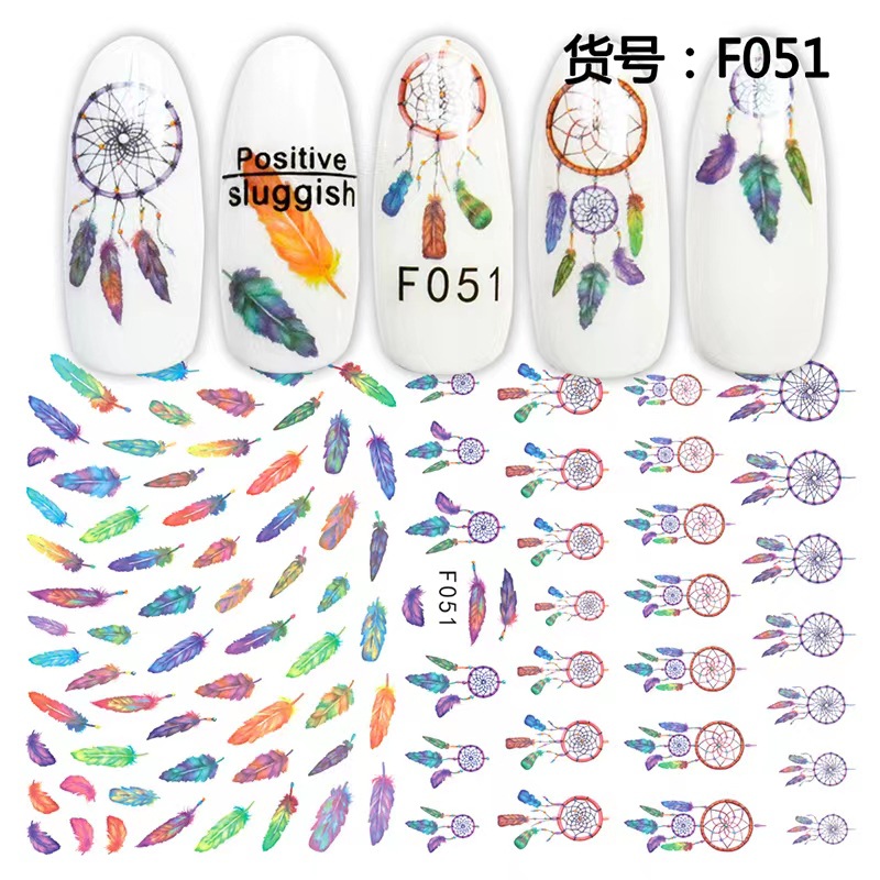 F049-057 크로스 보더 네일 아트 일본 깃털 네일 데칼 신선한 꿈 Dreamcatcher 그물 깃털 플랩 색상 다시 접착 스티커스토어 가기