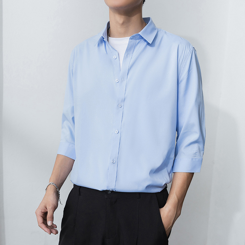 7 점 슬리브 단색 셔츠 남성용 2022 여름 하프 포인트 슬리브 셔츠 남성용 얇은 비즈니스 반팔 셔츠 남성용