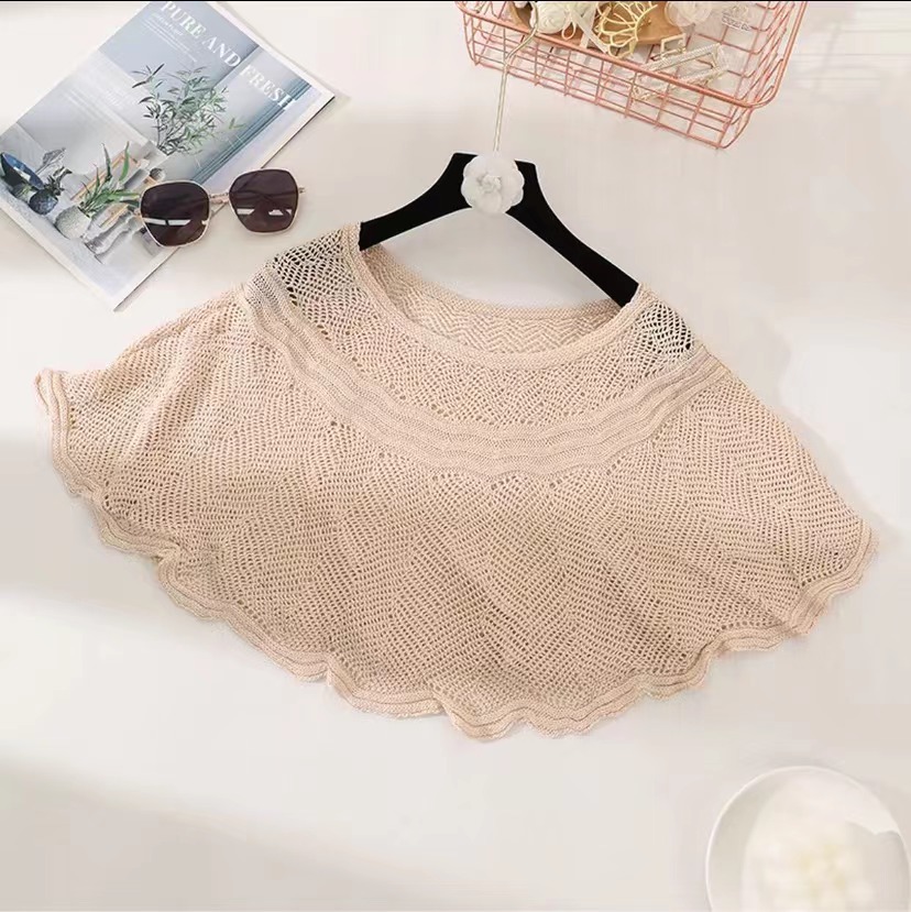 니트 목도리 중공 풀오버 케이프 아이스 실크 태양 보호 작은 목도리 외부 착용 장식 태양 보호 의류 여성 여름 TikTok 같은 스타일스토어 가기