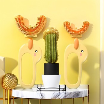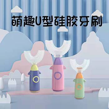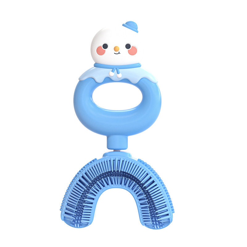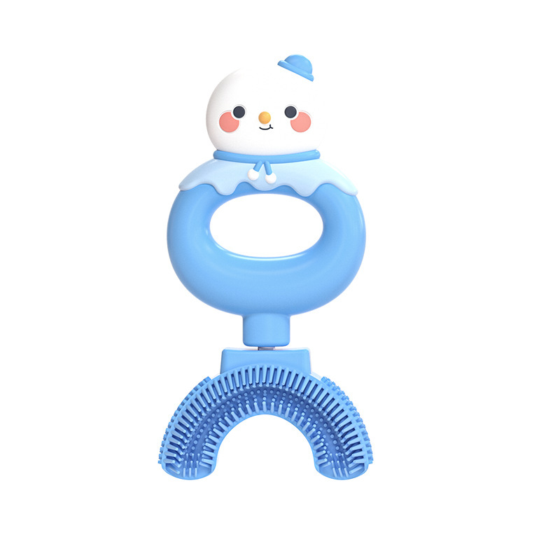 어린이 U 자형 칫솔 재미 귀여운 눈사람 음식 등급 실리콘 아기 어린 치아 관리 U 자형 부드러운 브러시 헤드 제조 업체 도매스토어 가기
