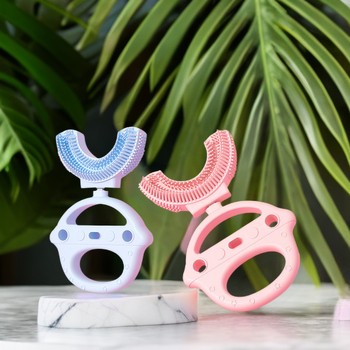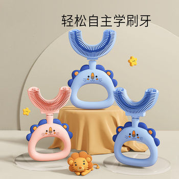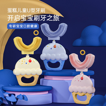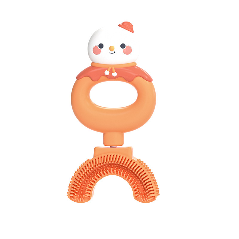어린이 U 자형 칫솔 재미 귀여운 눈사람 음식 등급 실리콘 아기 어린 치아 관리 U 자형 부드러운 브러시 헤드 제조 업체 도매