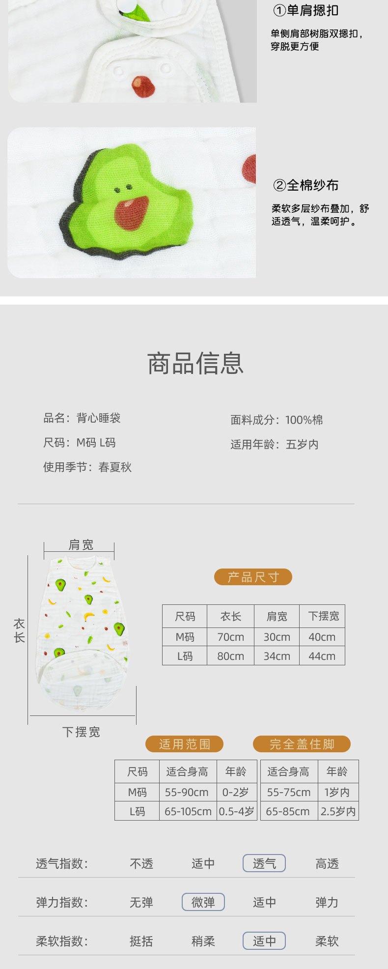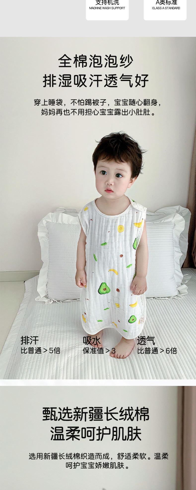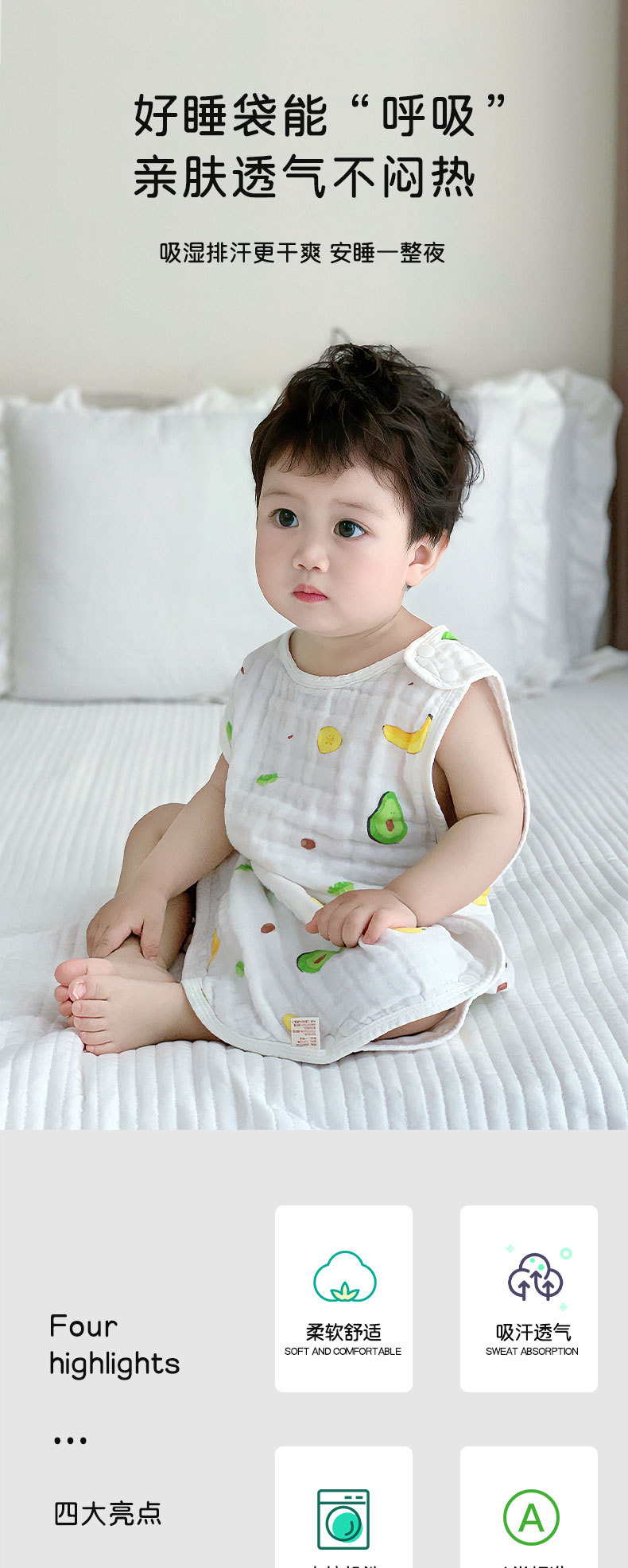 신생아 아기 여름용 얇은 순면 거즈 발차기 방지 이불, 어린이용 조끼형 수면조끼, 통기성스토어 가기