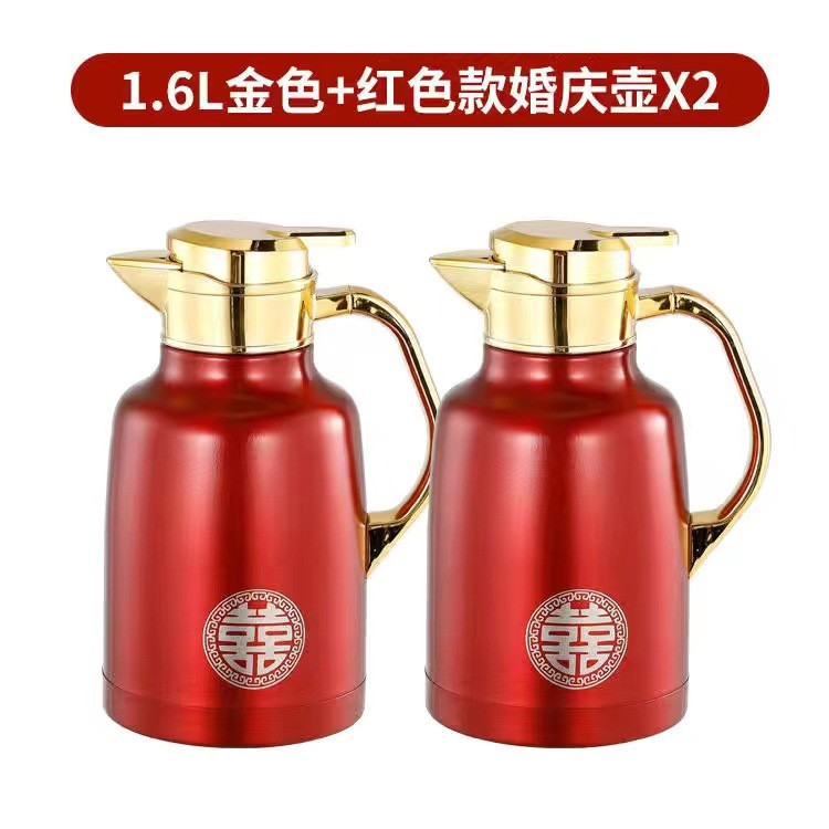 빨간 보온병 냄비 304 스테인레스 스틸 웨딩 온수 병 축제 동반 따뜻한 진공 주전자