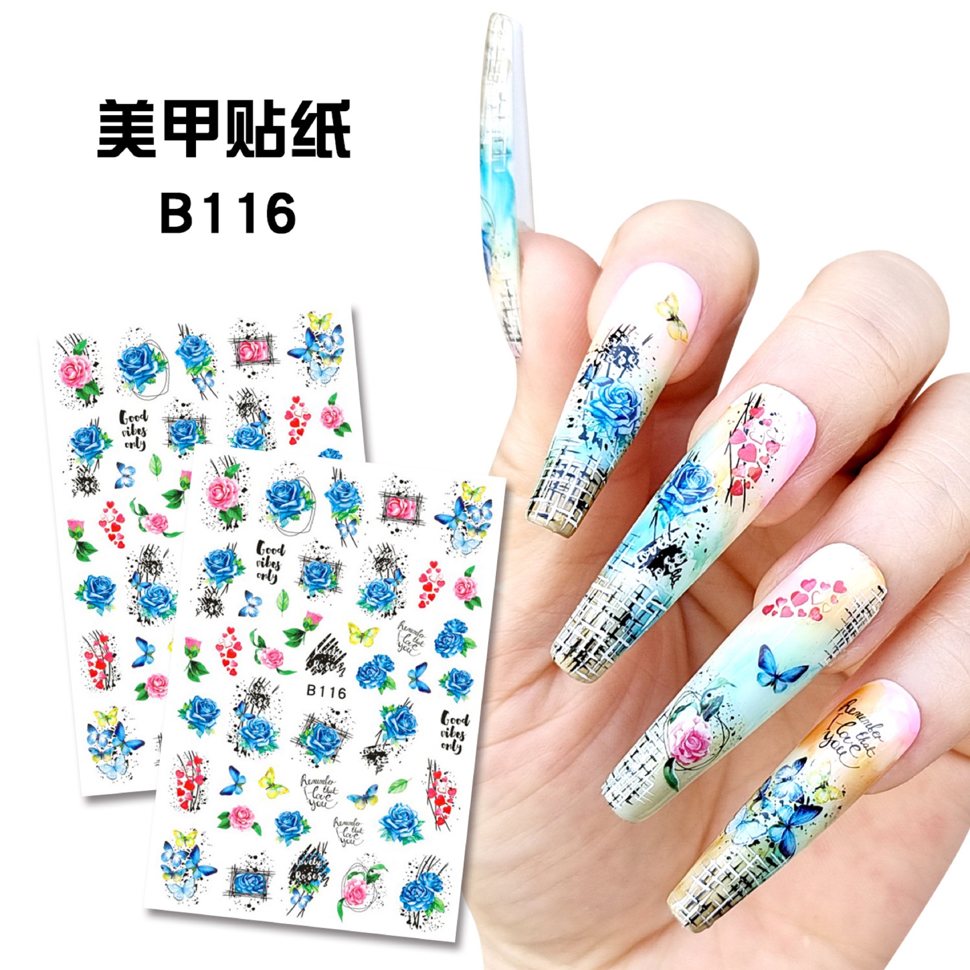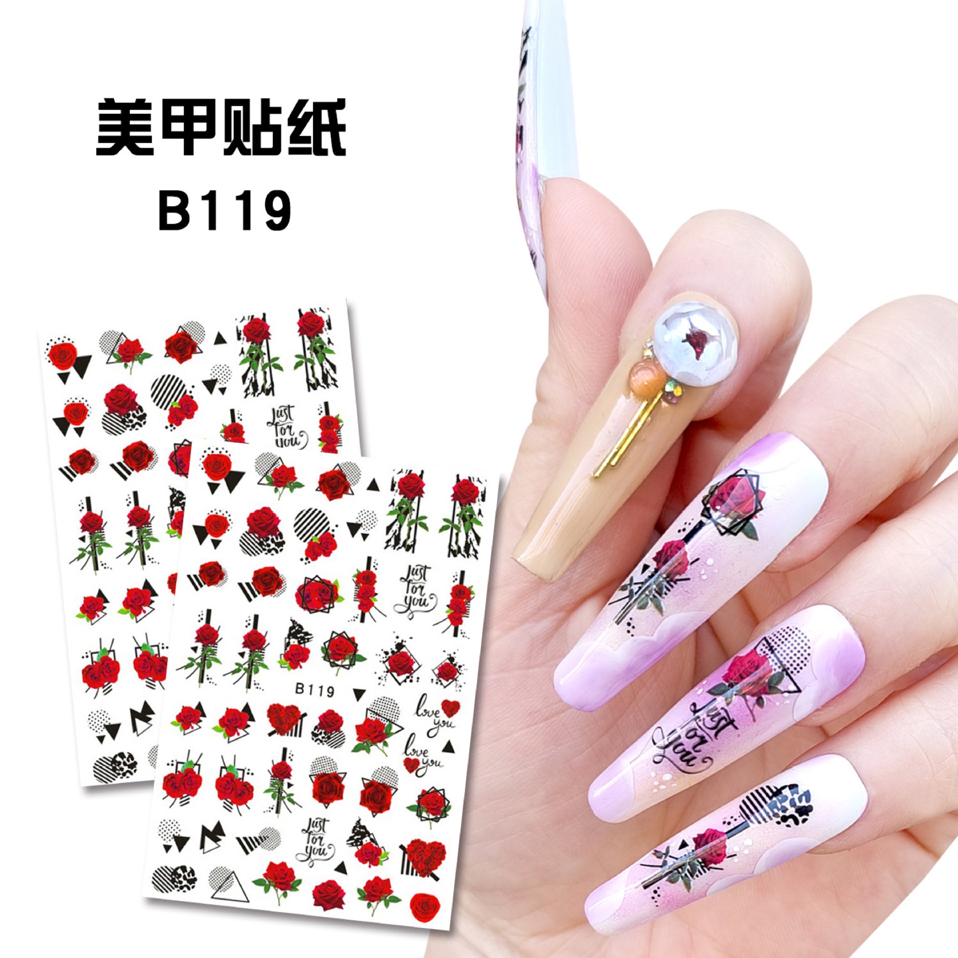 B111-112 장미 2022 발렌타인 데이 꽃 시리즈 접착제 네일 아트 아플리케 종이 카드 개별 포장